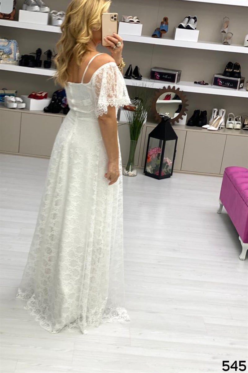 ASKILI DANTEL DETAYLI ASTARLI UZUN ELBİSE