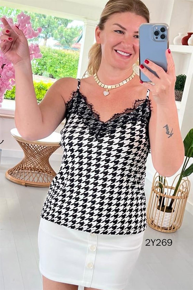ASKISI AYARLANABİLİR DANTELLİ BLUZ OMUZDAN AŞAĞI 60 CM