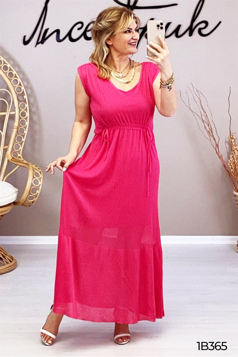 ASTARLI TRİKO ELBİSE OMUZDAN AŞAĞI 133 CM