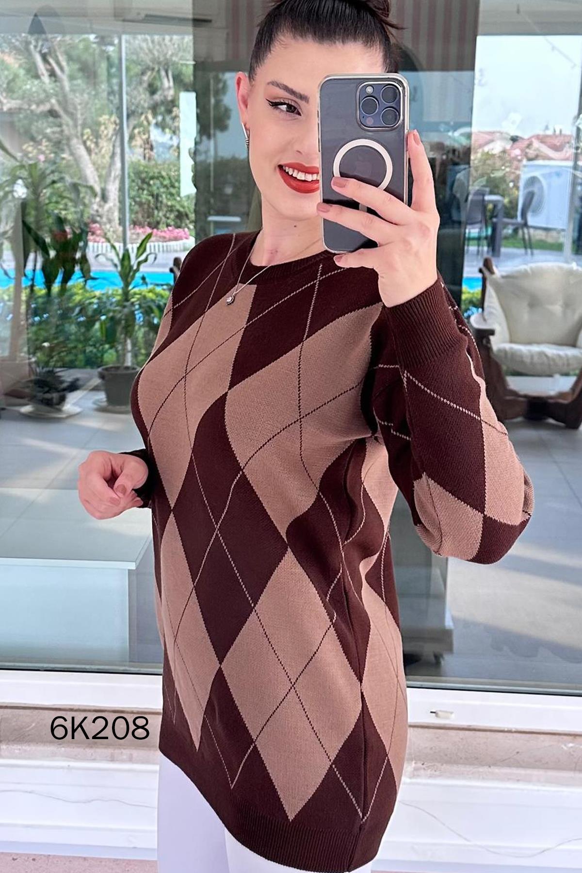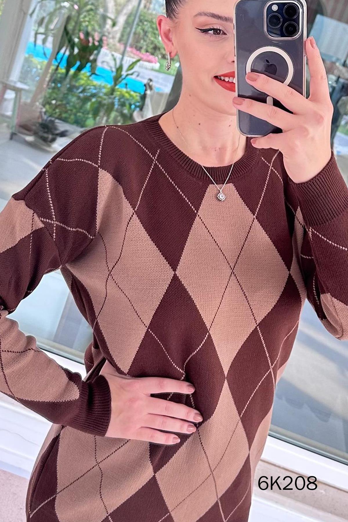BAKLAVA DESEN TRİKO TUNİK OMUZDAN AŞAĞI 76 CM