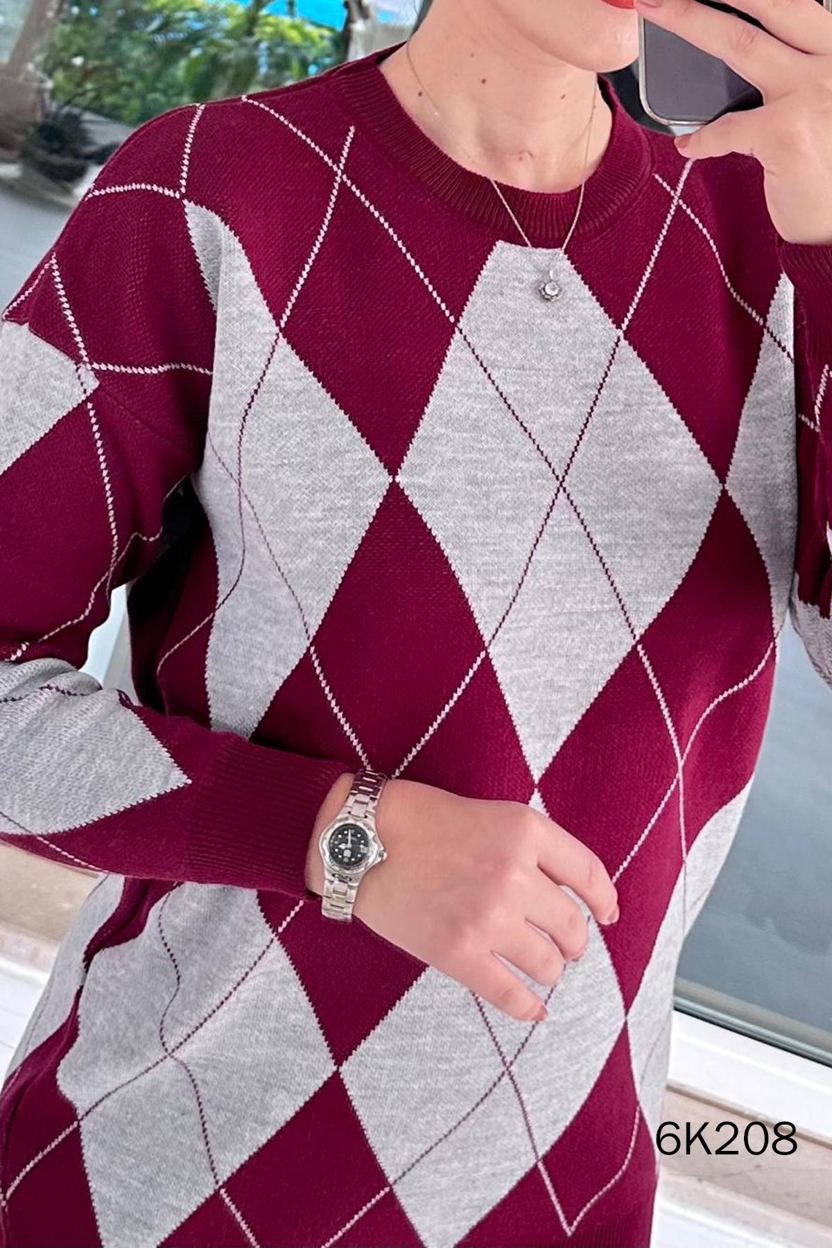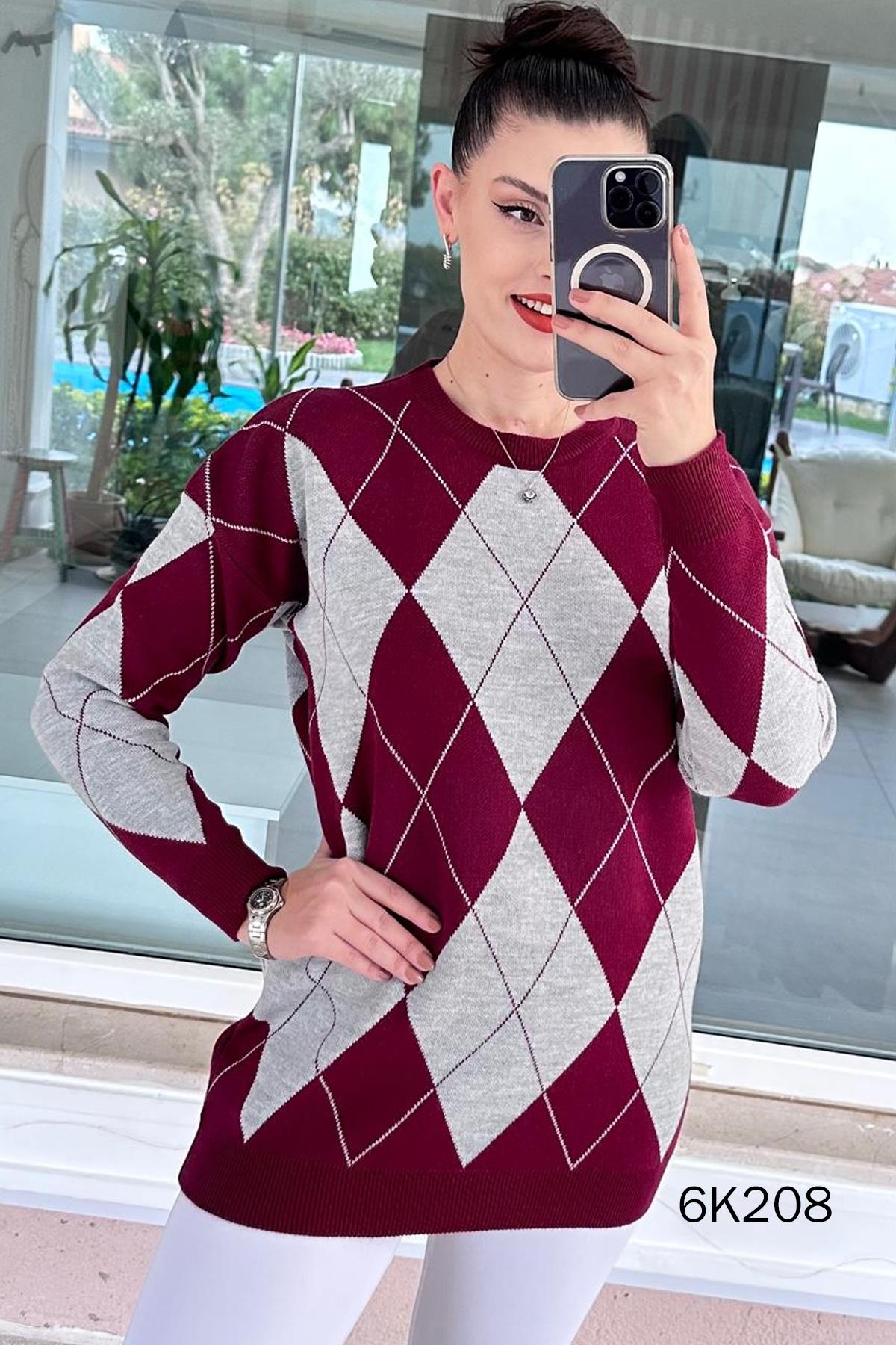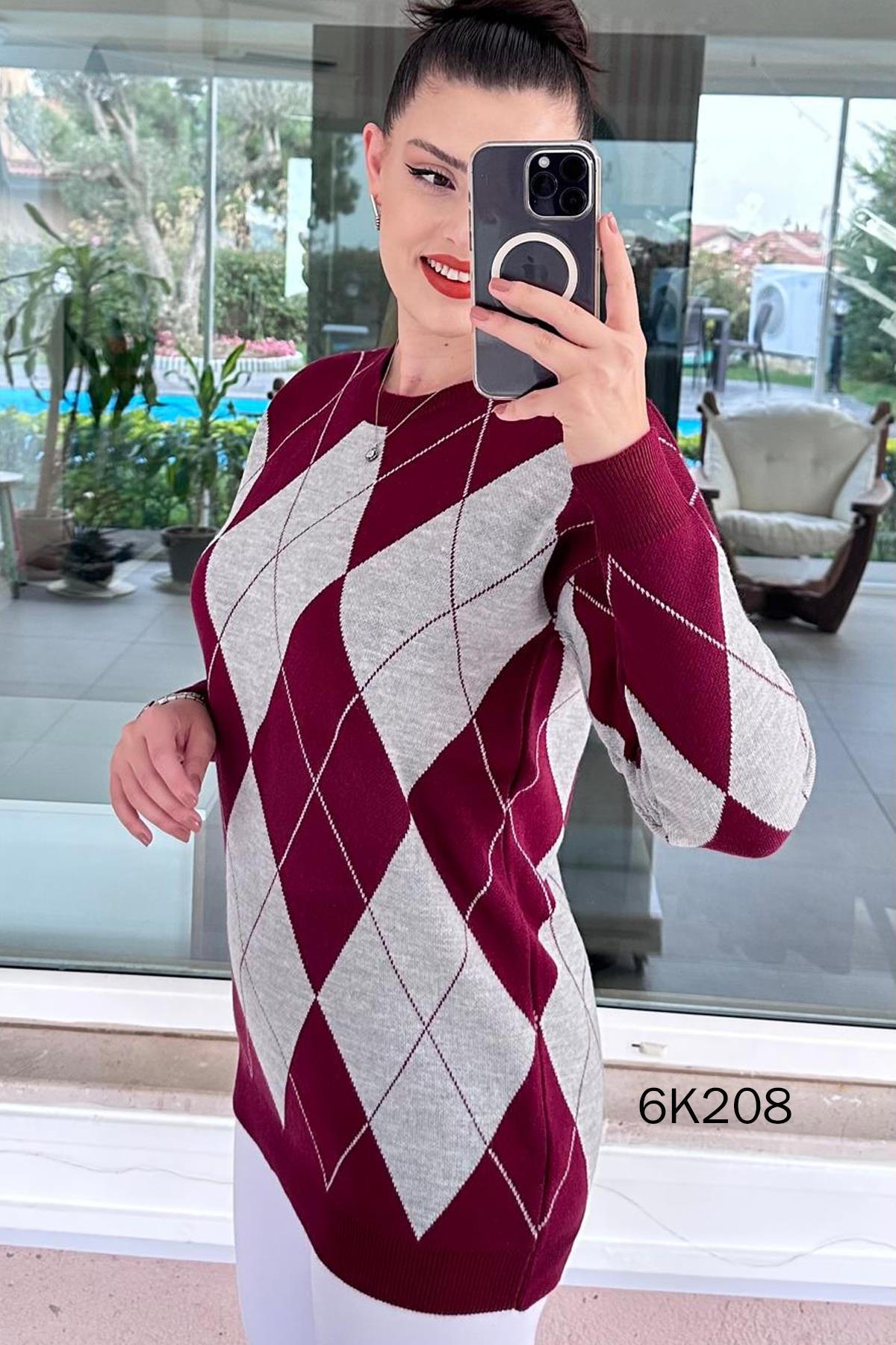BAKLAVA DESEN TRİKO TUNİK OMUZDAN AŞAĞI 76 CM