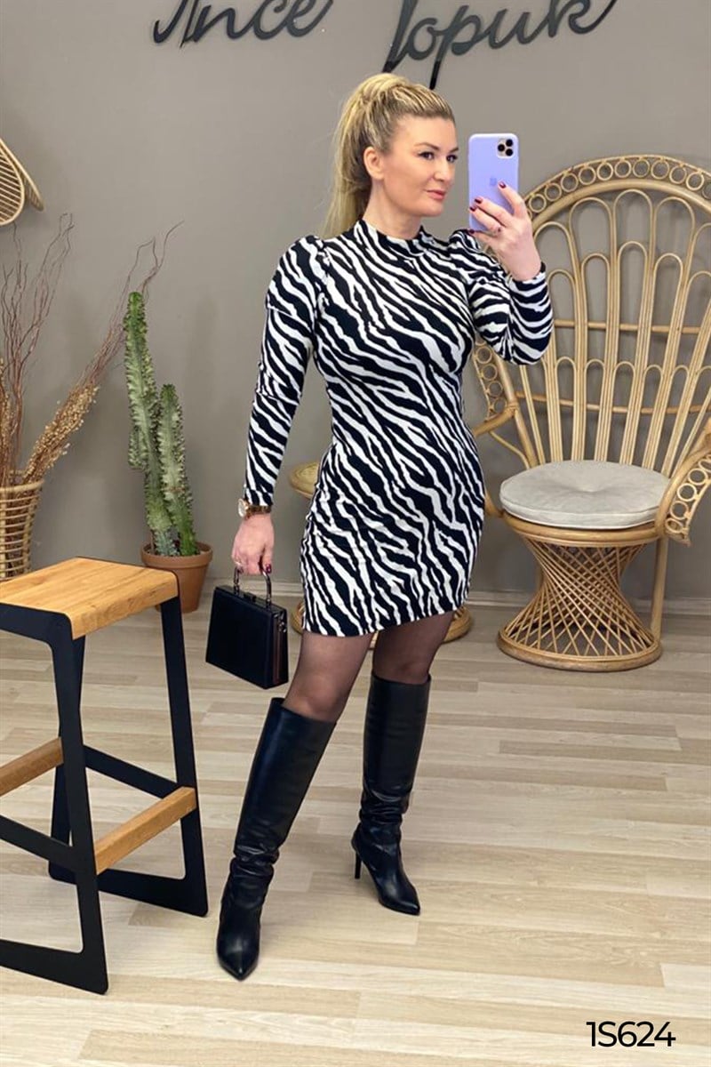 BALON KOL İNCE POLAR DESENLİ ELBİSE OMUZDAN AŞAĞI 90 CM