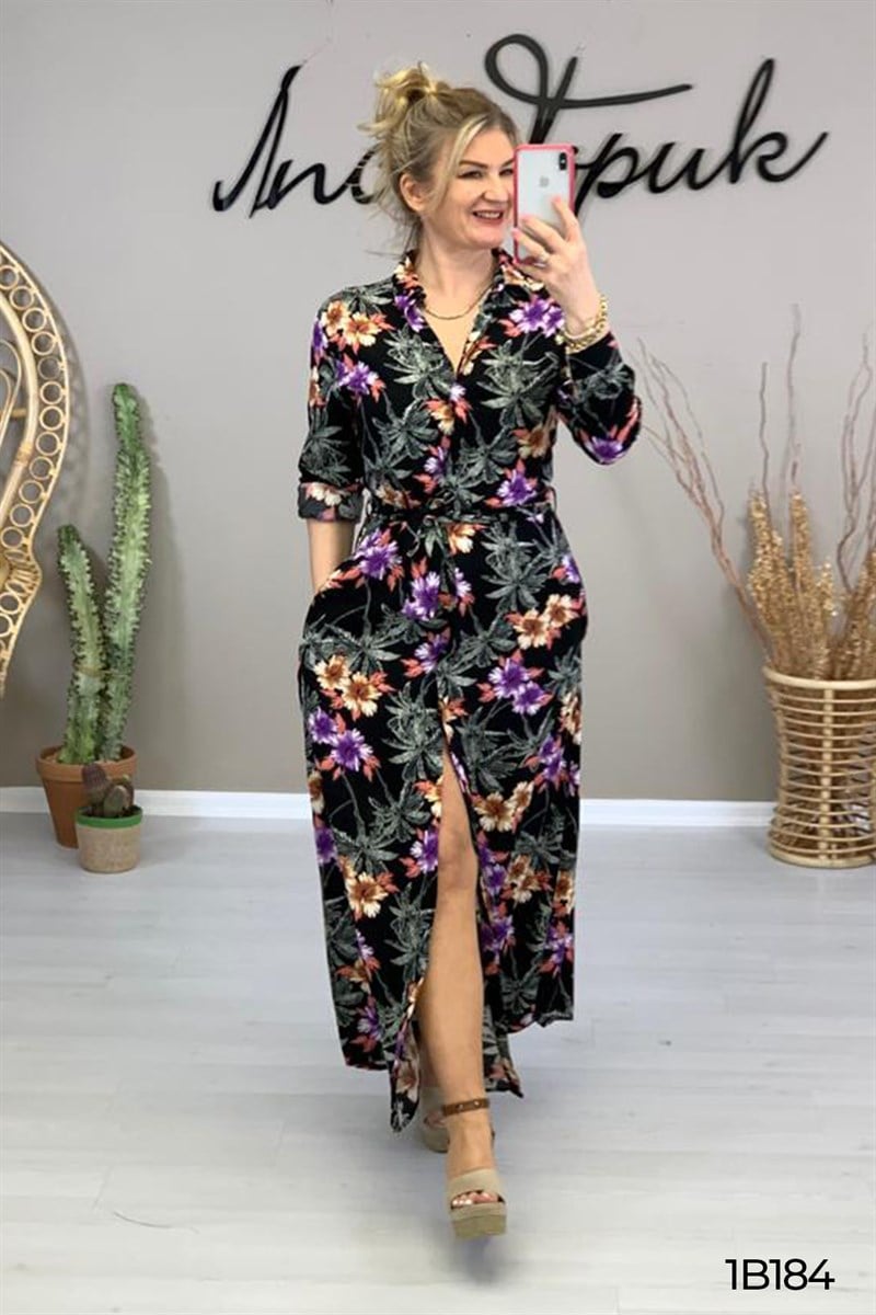 BELDEN BAĞLAMALI DÜĞMELİ ELBİSE OMUZDAN AŞAĞI 140 CM