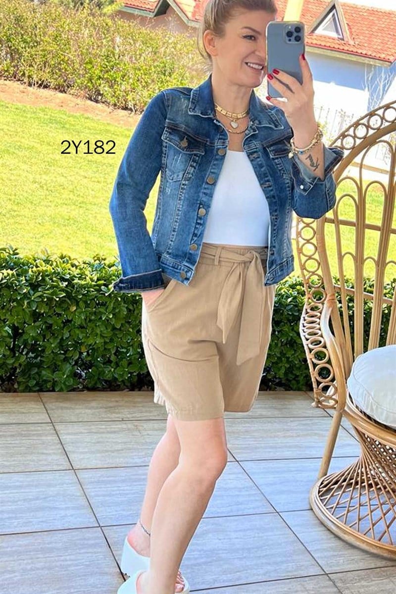 BELDEN BAĞLAMALI KETEN ŞORT BELDEN AŞAĞI 50 CM