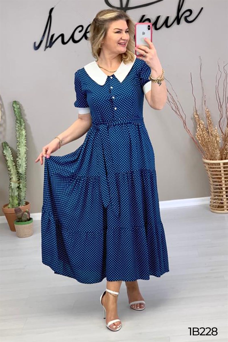 BELDEN BAĞLAMALI YANDAN CEPLİ PUANTİYELİ ELBİSE OMUZDAN AŞAĞI 130 CM