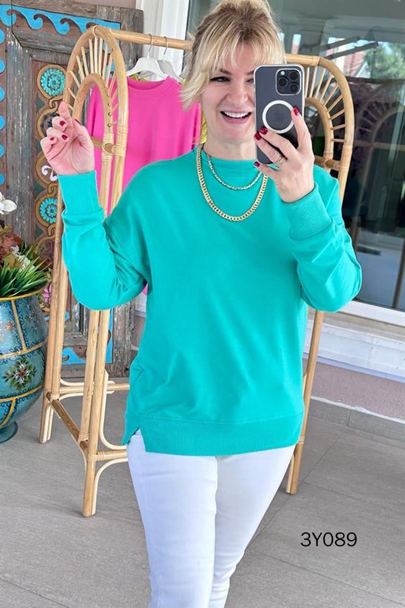 BİSİKLET YAKA 2 İPLİK SWEATSHİRT OMUZDAN AŞAĞI 70 CM