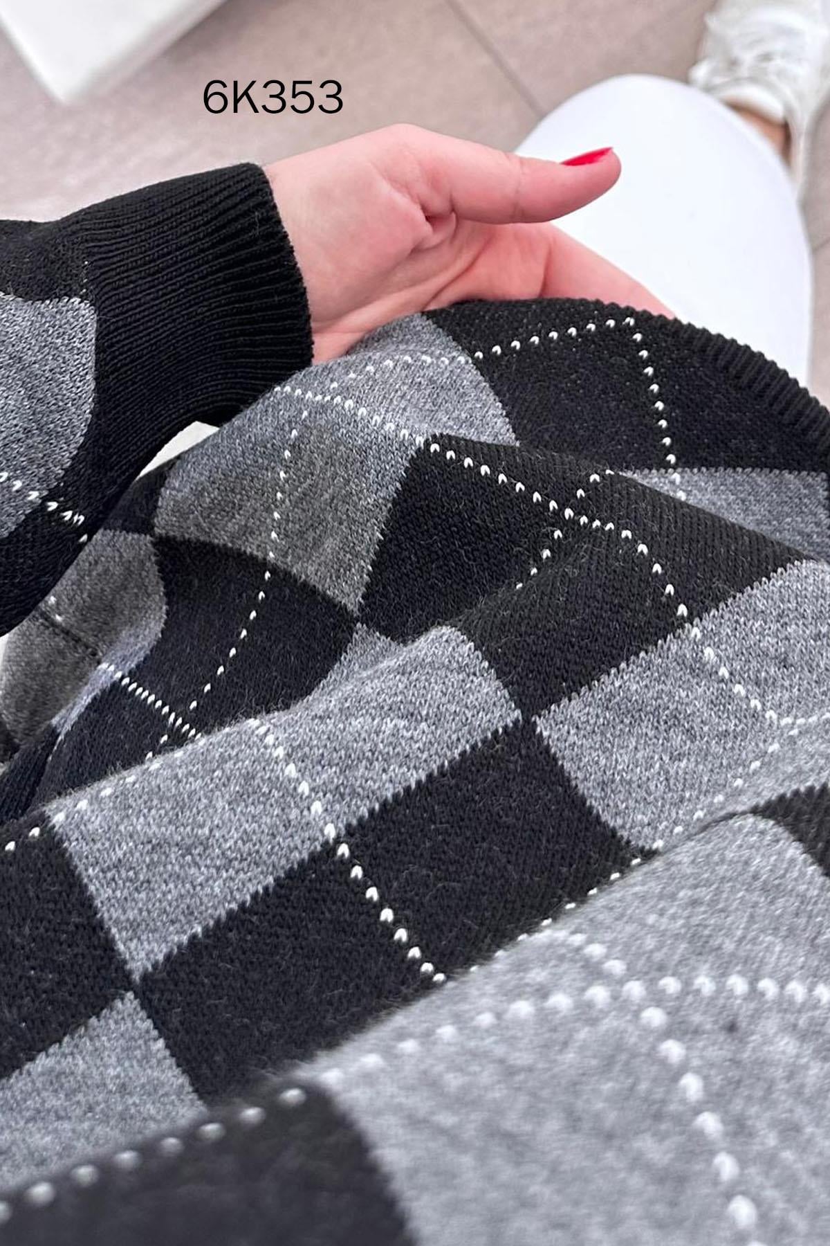 Bisiklet Yaka Baklava Desenli Triko Bluz (6K3533299464)