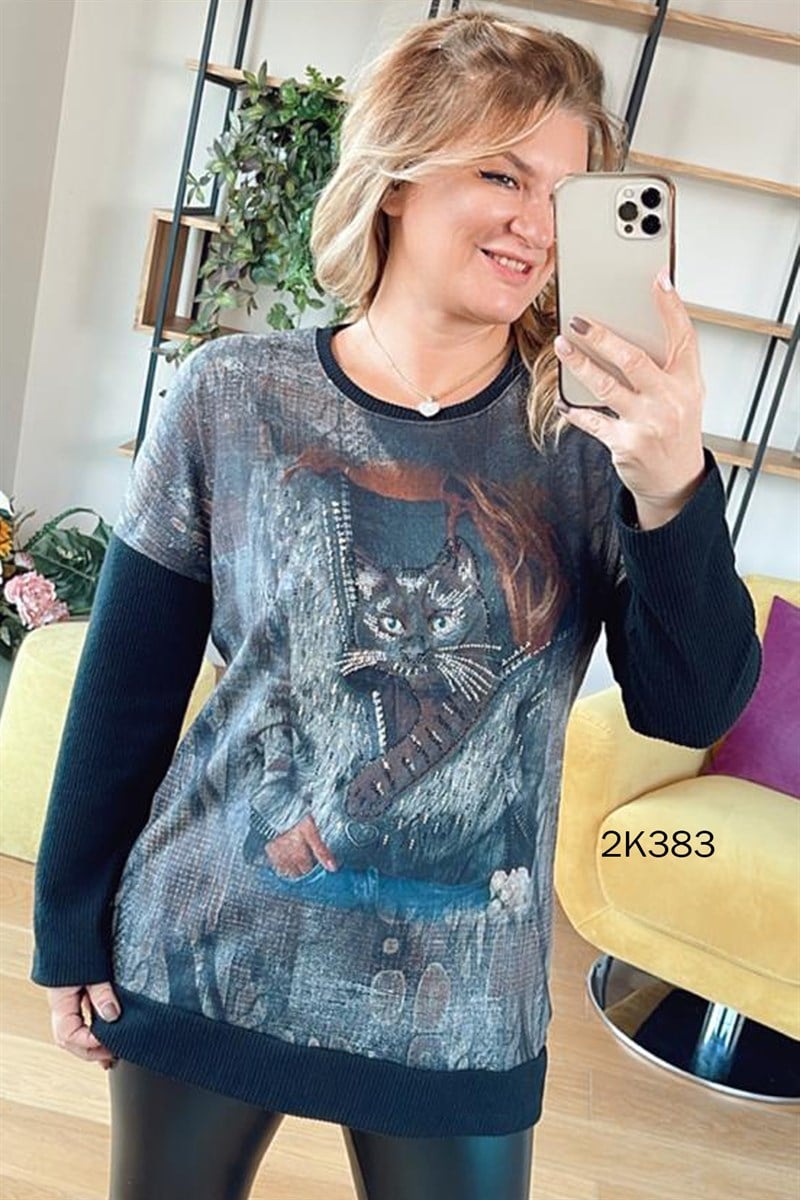 BİSİKLET YAKA DİJİTAL BASKILI BLUZ OMUZDAN AŞAĞI BOY 75CM