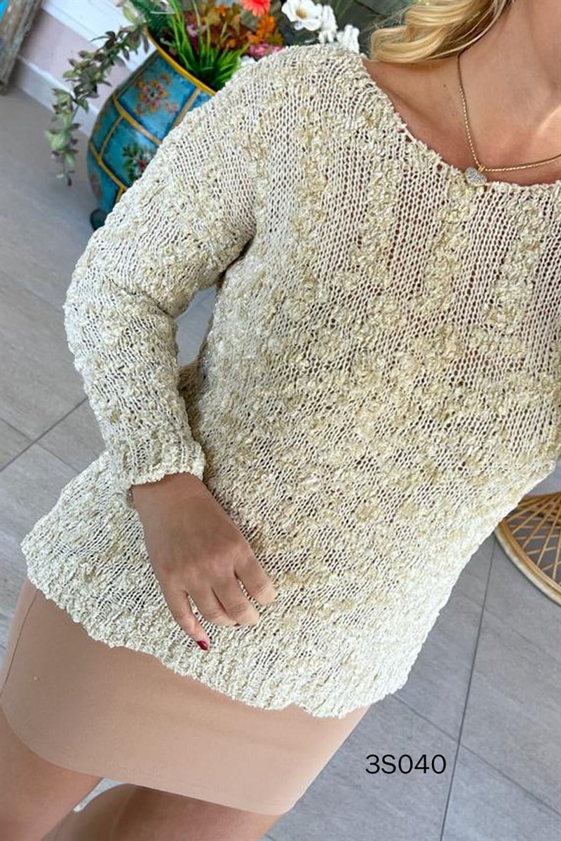 BİSİKLET YAKA TRİKO BLUZ OMUZDAN AŞAĞI 55 CM