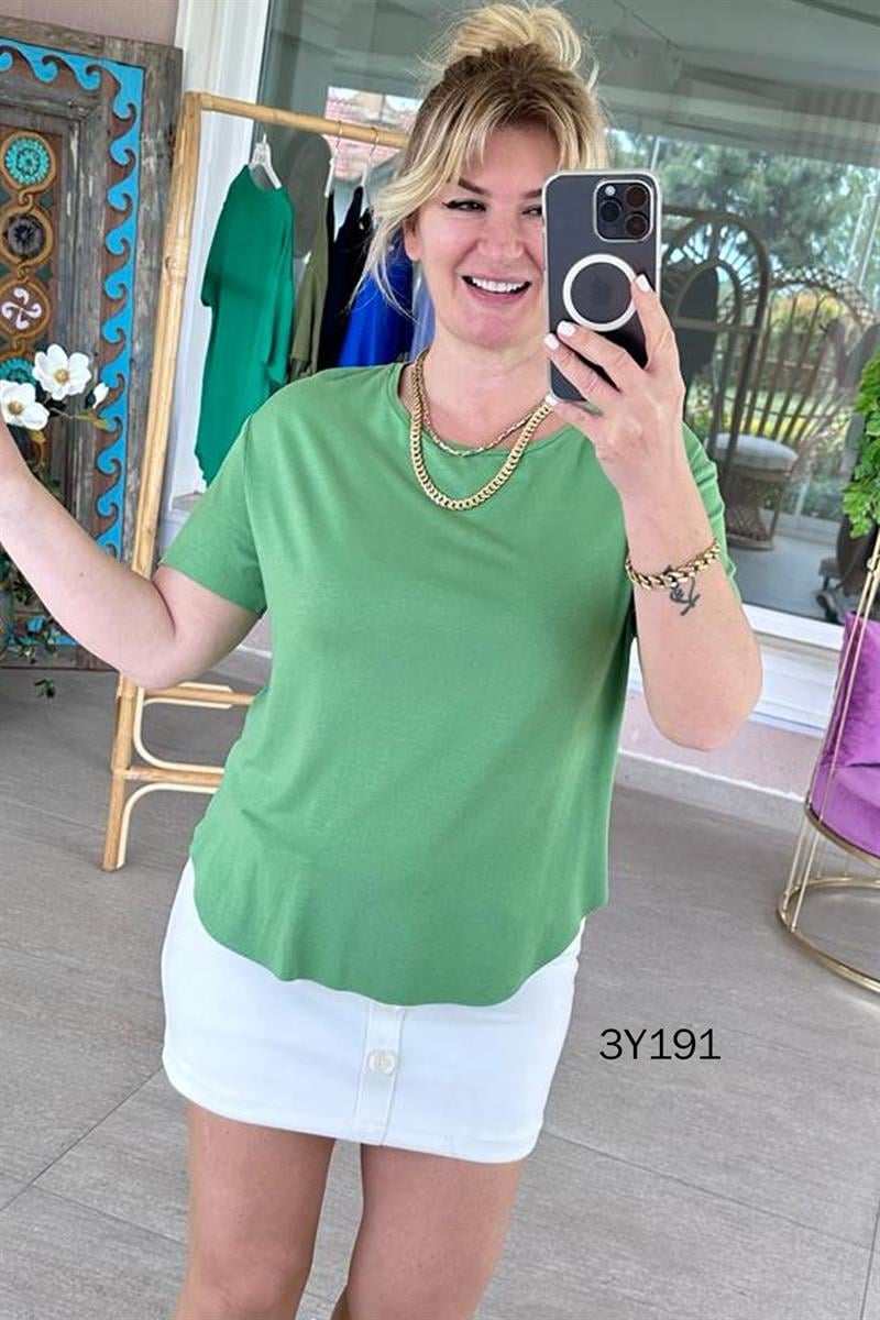 BİSİKLET YAKA BAMBU TSHİRT OMUZDAN AŞAĞI ÖN 68 ARKA 73 CM