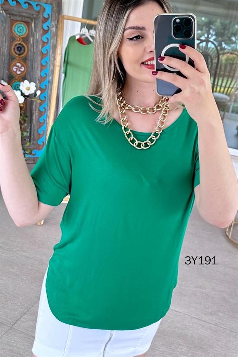 BİSİKLET YAKA BAMBU TSHİRT OMUZDAN AŞAĞI ÖN 68 ARKA 73 CM
