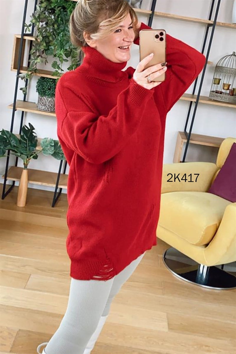 BOĞAZLI TRİKO BLUZ OMUZDAN AŞAĞI 76 CM