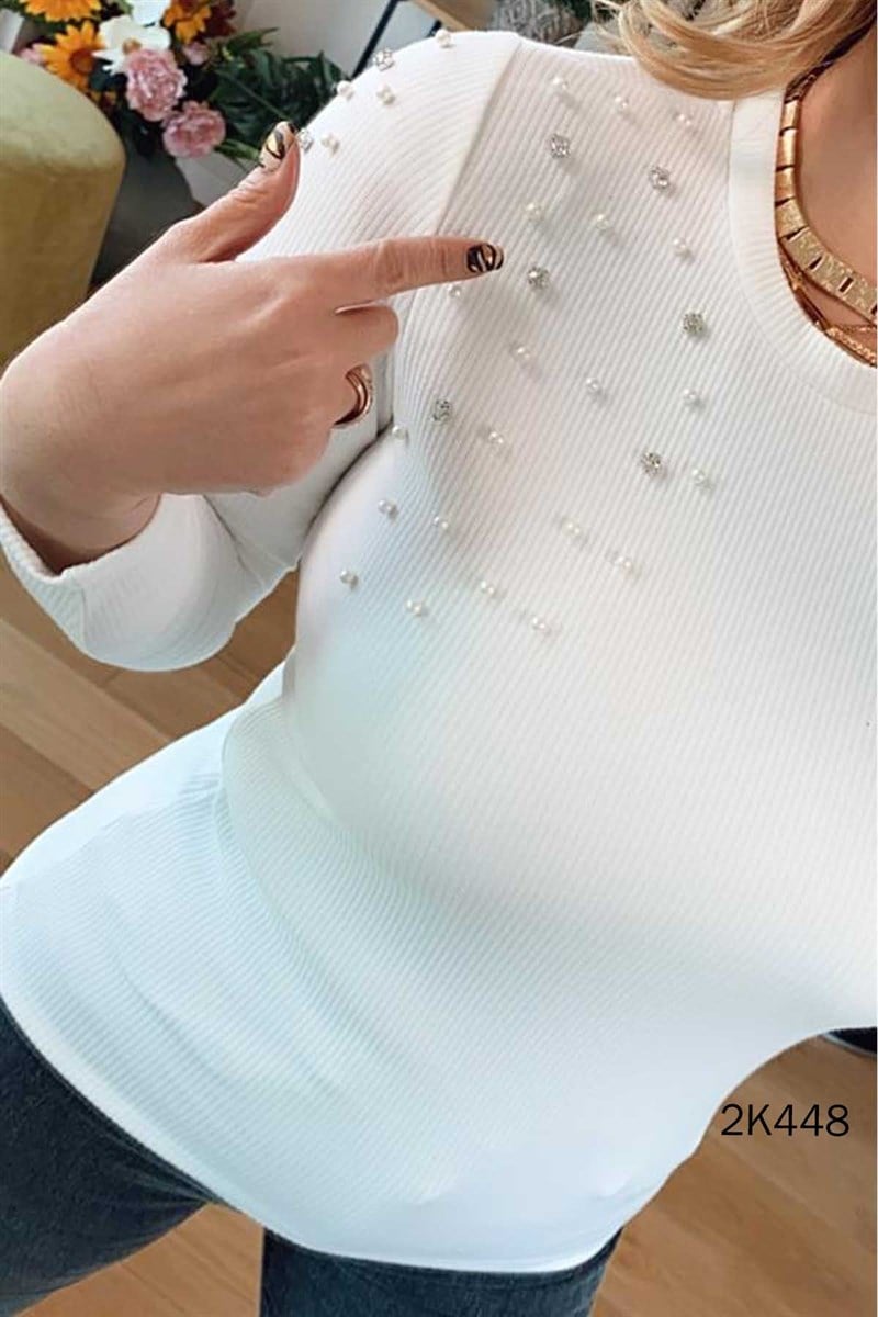 Boncuk İşlemeli Kaşkorse Bluz