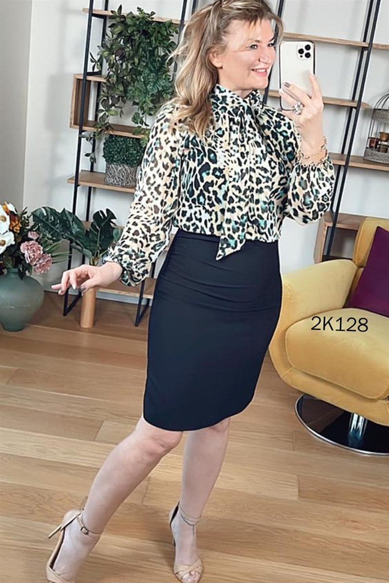 BOYUNDAN BAĞLAMALI ŞİFON GARNİLİ ELBİSE OMUZDAN AŞAĞI 95 CM