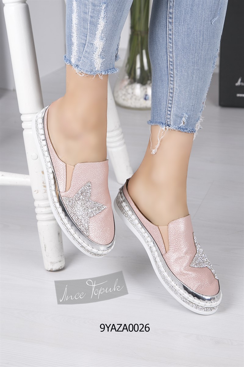 ARKASI AÇIK YILDIZ DESENLİ TAŞLI AYAKKABI MODELİDİR.
