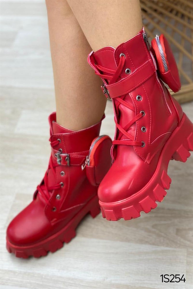 YANDAN FERMUARLI ÇANDA DETAYLI KALIN TABAN BOT TABAN YÜKKSEKLİĞİ 6CM KONÇ YÜKSEKLİĞİ 18CM