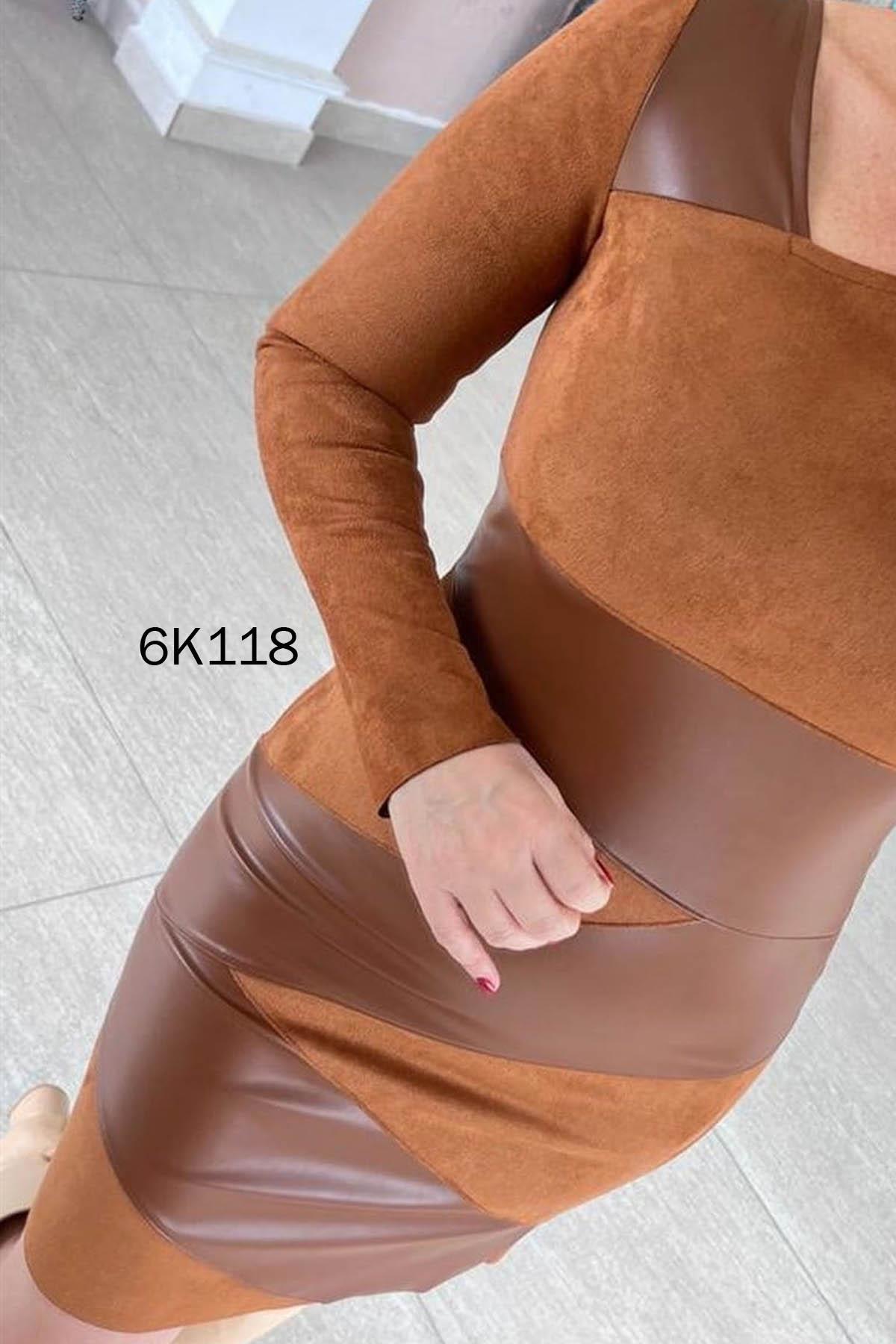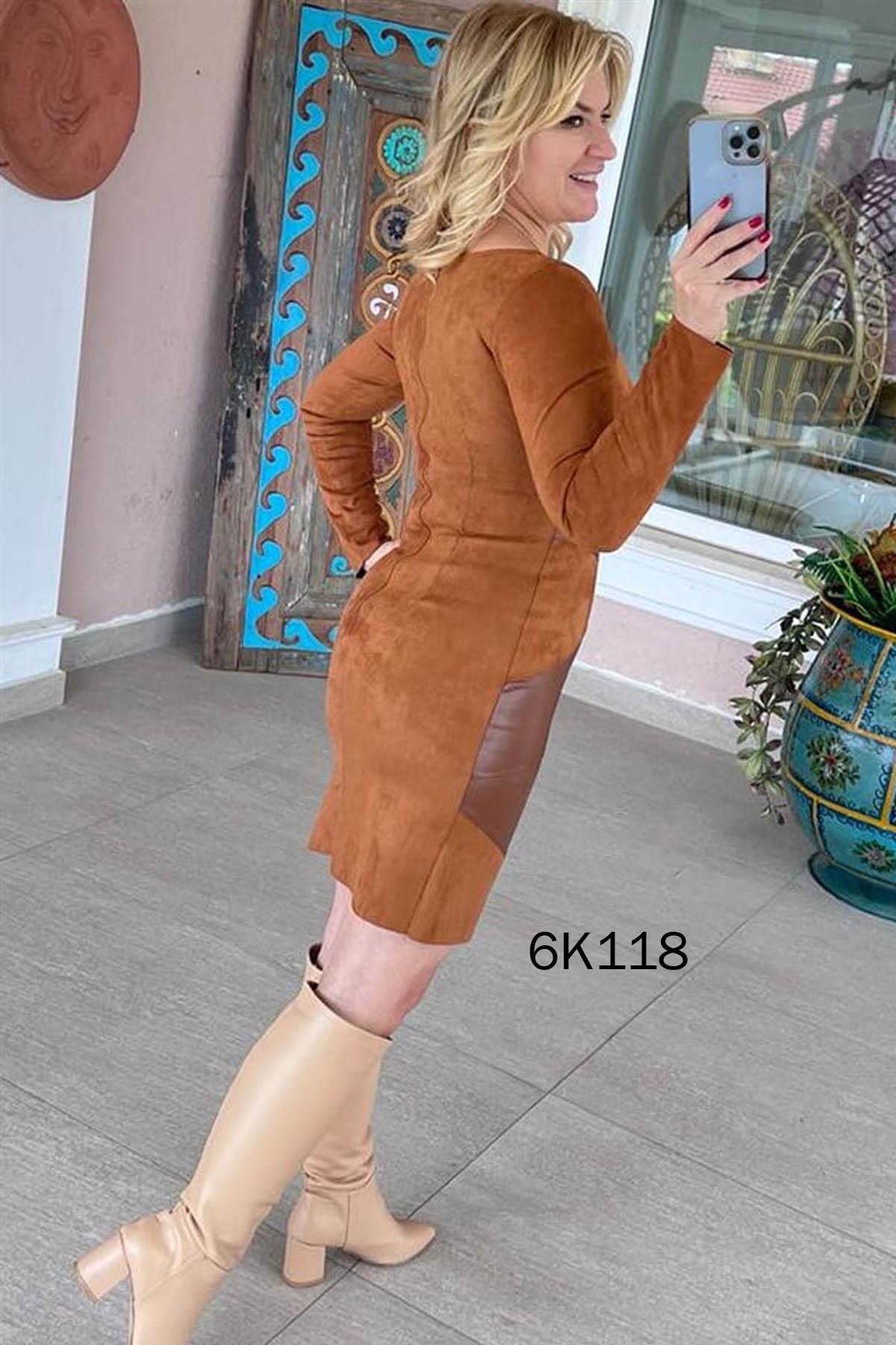 ÇAPRAZ DERİ DERİ GARNİLİ SÜET ELBİSE OMUZDAN AŞAĞI 90 CM