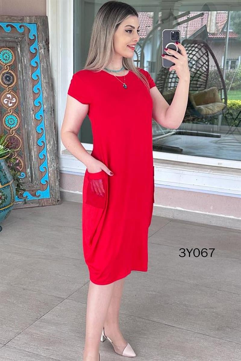 CEPLERİ FİLELİ VİSKON ELBİSE OMUZDAN AŞAĞI 111 CM