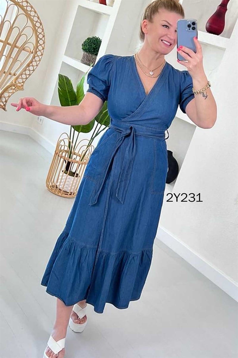 CEPLİ KRUVAZE KOT ELBİSE OMUZDAN AŞAĞI 120 CM