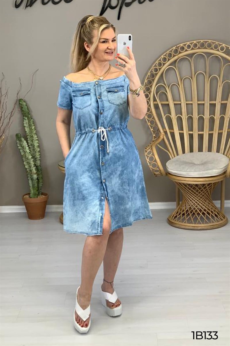 ÇITÇIT DÜĞMELİ KOTON ELBİSE OMUZDAN AŞAĞI 92 CM