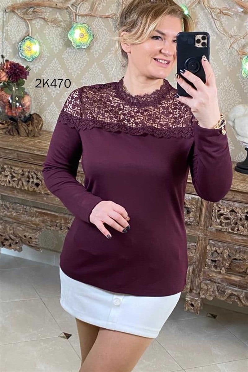 GÜPÜR DETAY LİKRALI BLUZ OMUZDAN AŞAĞI 60 CM