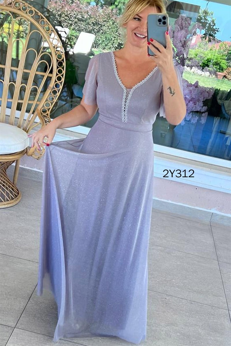 DANTEL DETAY SİMLİ ELBİSE OMUZDAN AŞAĞI 155 CM