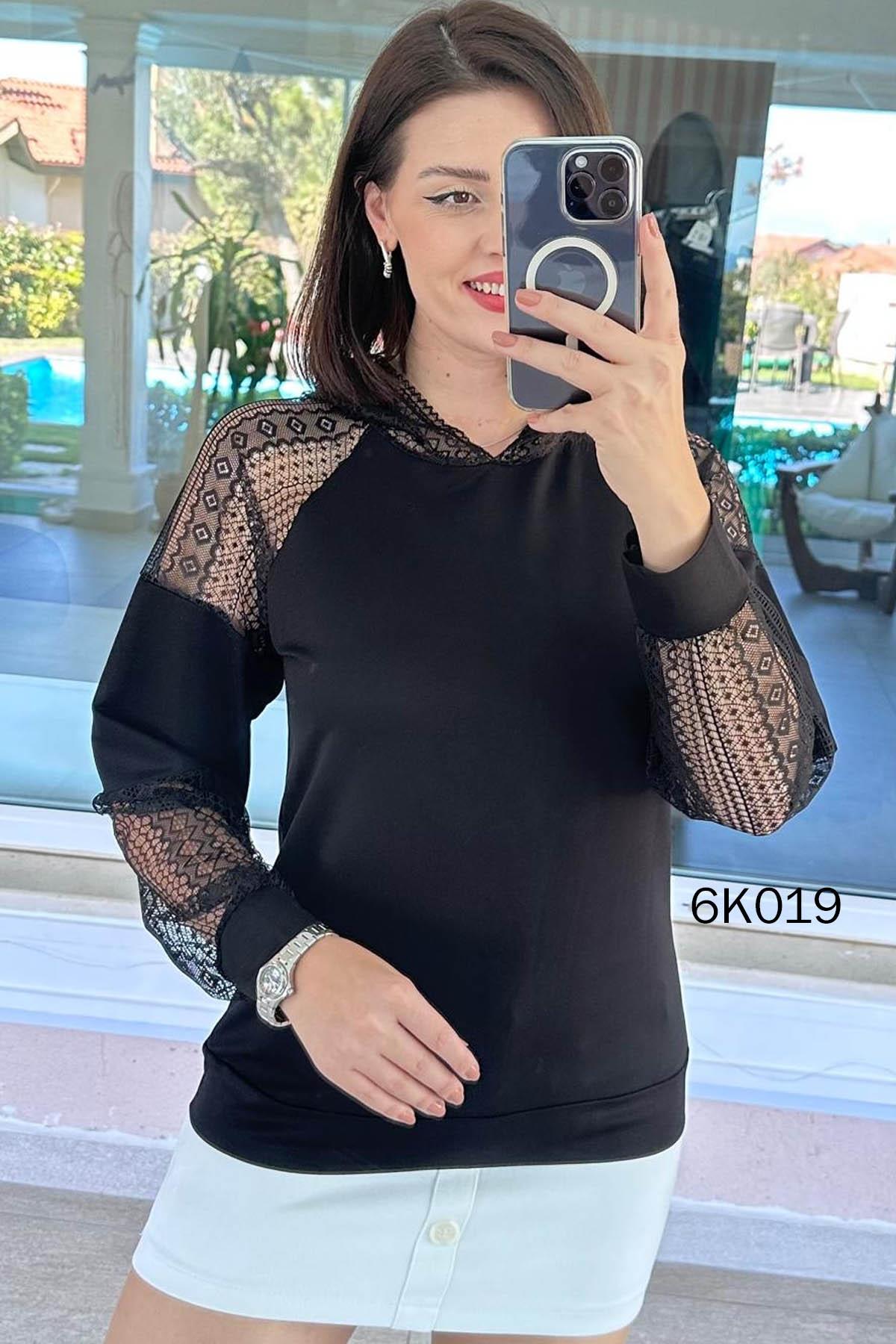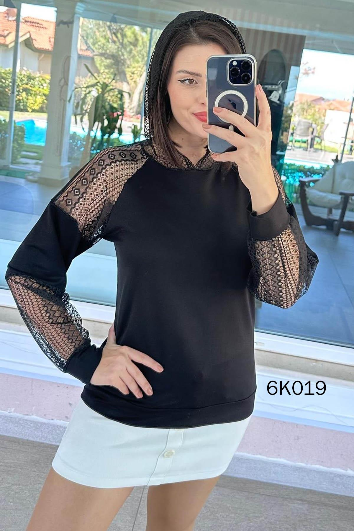 DANTEL GARNİLİ VİSKON 2 İPLİK BLUZ OMUZDAN AŞAĞI 65 CM