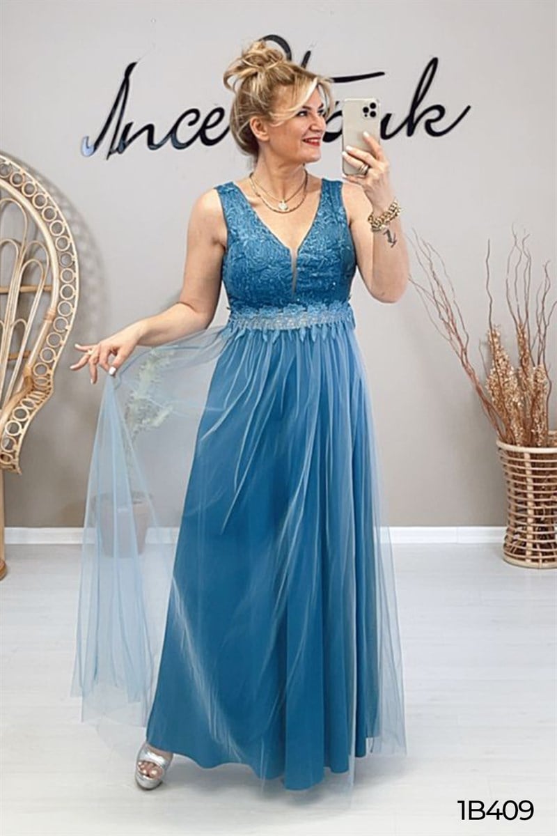 DANTEL GÜPÜRLÜ TÜL DETAY ELBİSE OMUZDAN AŞAĞI 150 CM