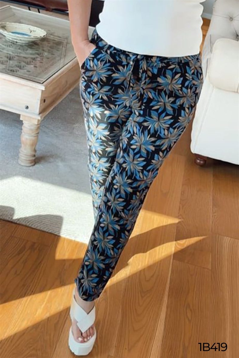 DAR PAÇA BELİ LASTİKLİ DESENLİ PANTOLON BELDEN AŞAĞI 90 CM
