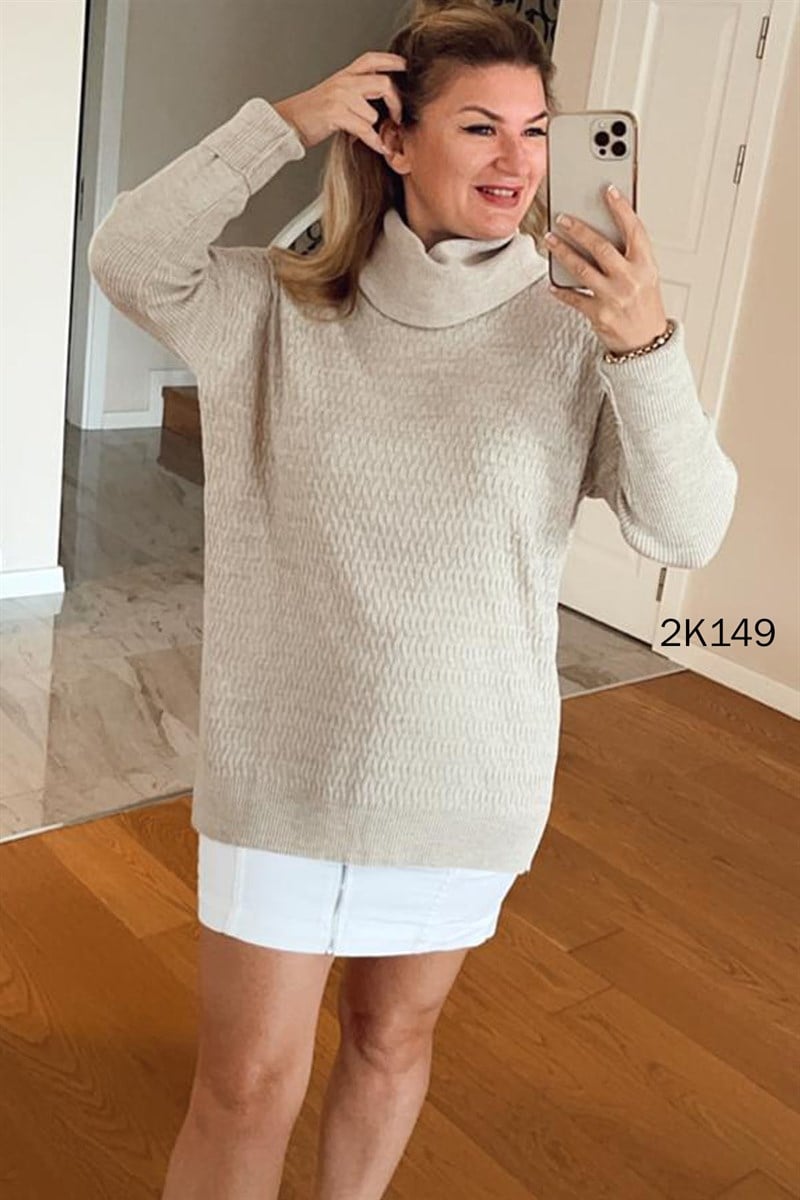 DEGAJE YAKA DESENLİ TRİKO BLUZ OMUZDAN AŞAĞI 75 CM