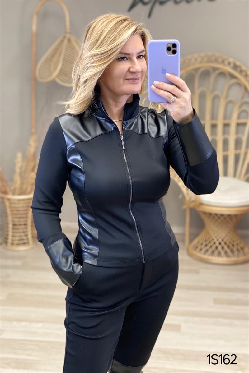 DERİ DETAY ÖNÜ FERMUARLI CEKET OMUZDAN AŞAĞI 55CM