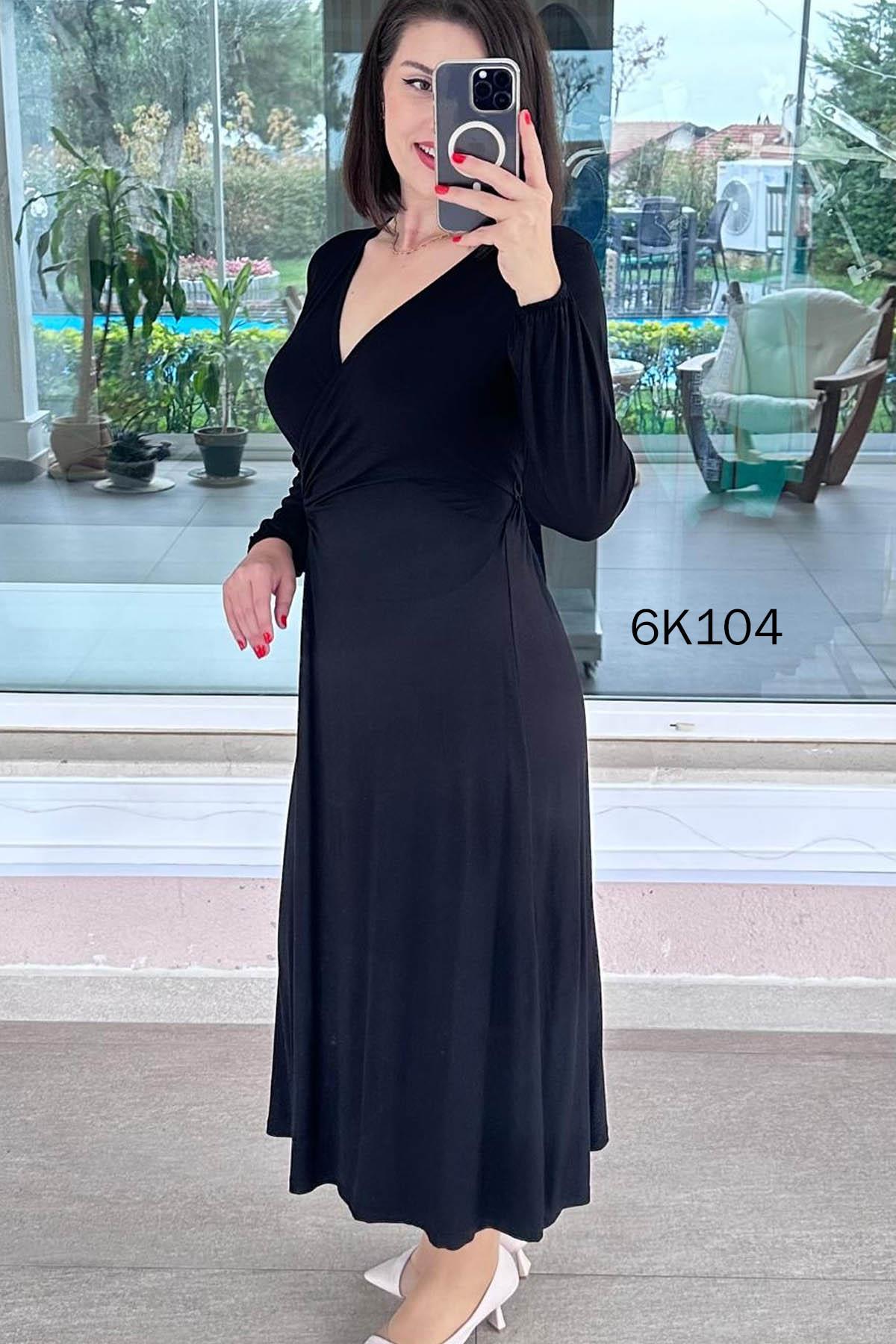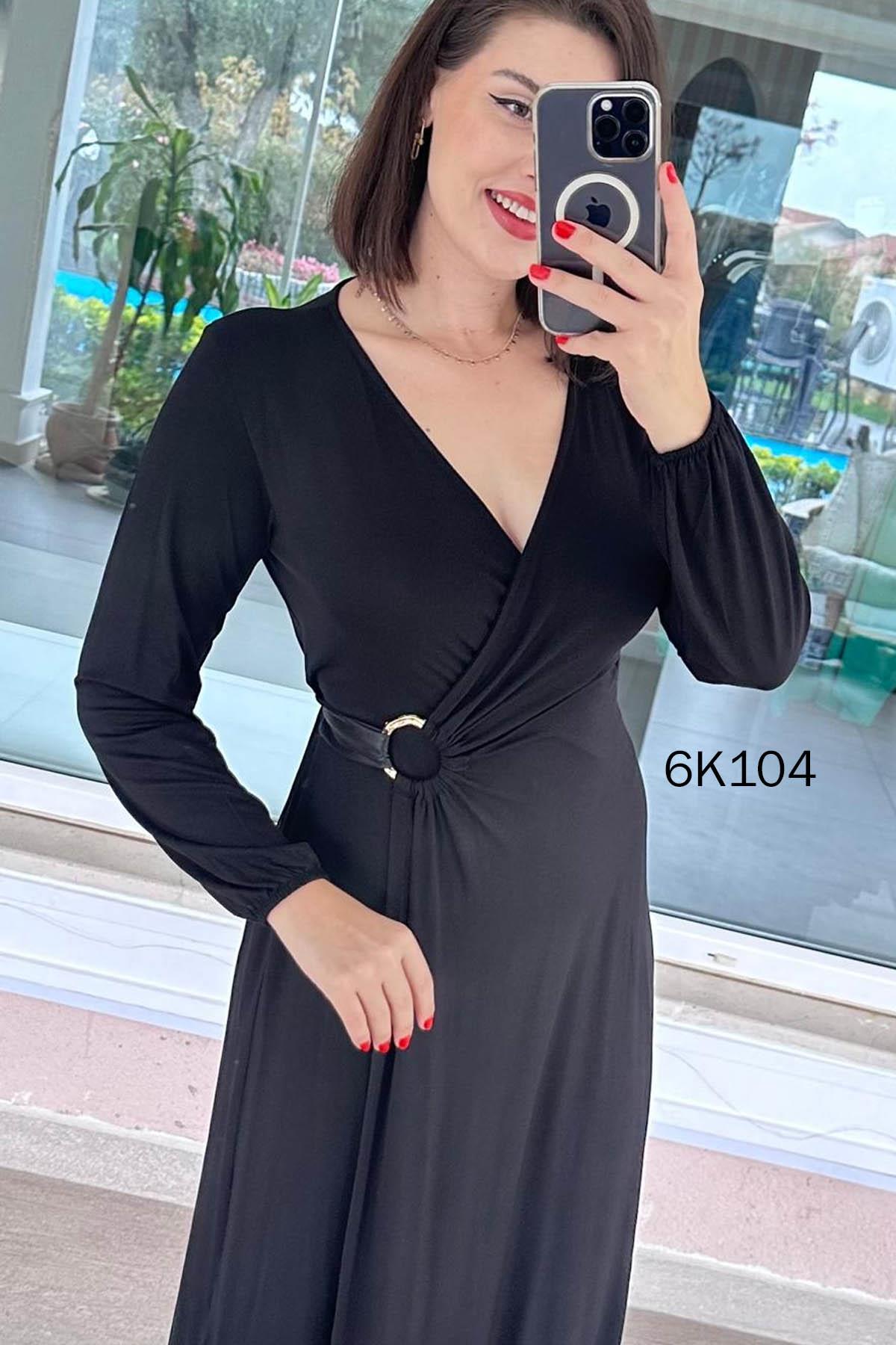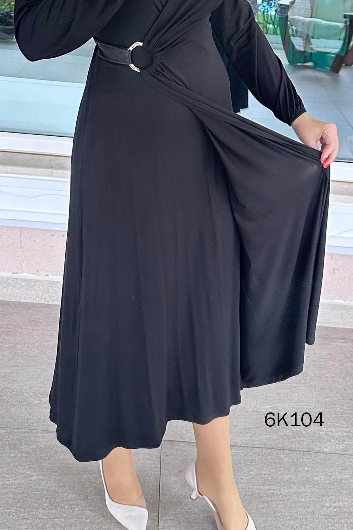 DERİ DETAYLI TOKALI KRİSTAL KUMAŞ ELBİSE OMUZDAN AŞAĞI 130 CM