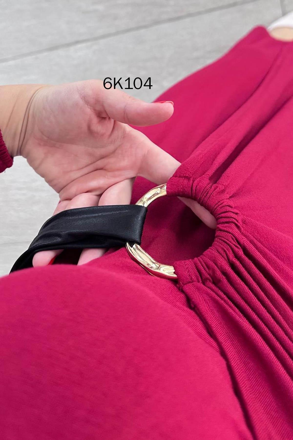 Deri Detaylı Tokalı Kristal Kumaş Elbise