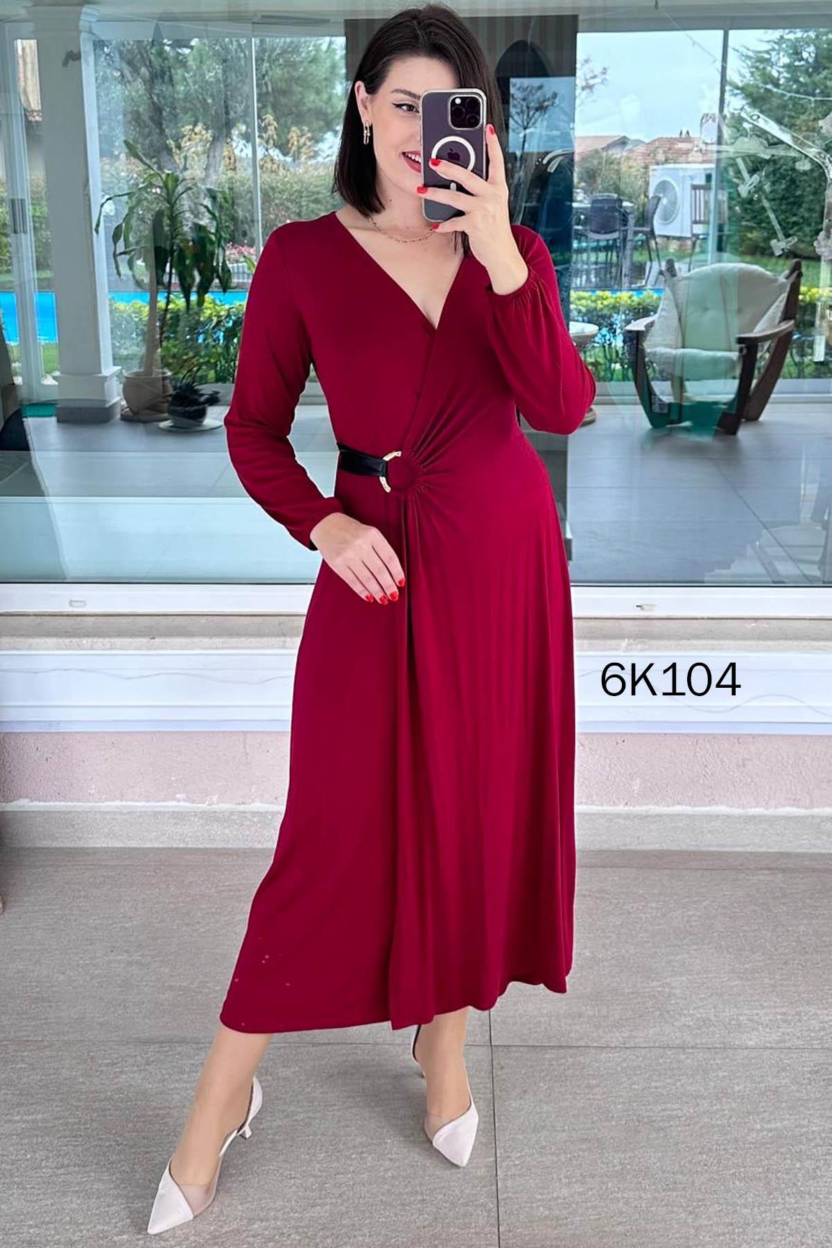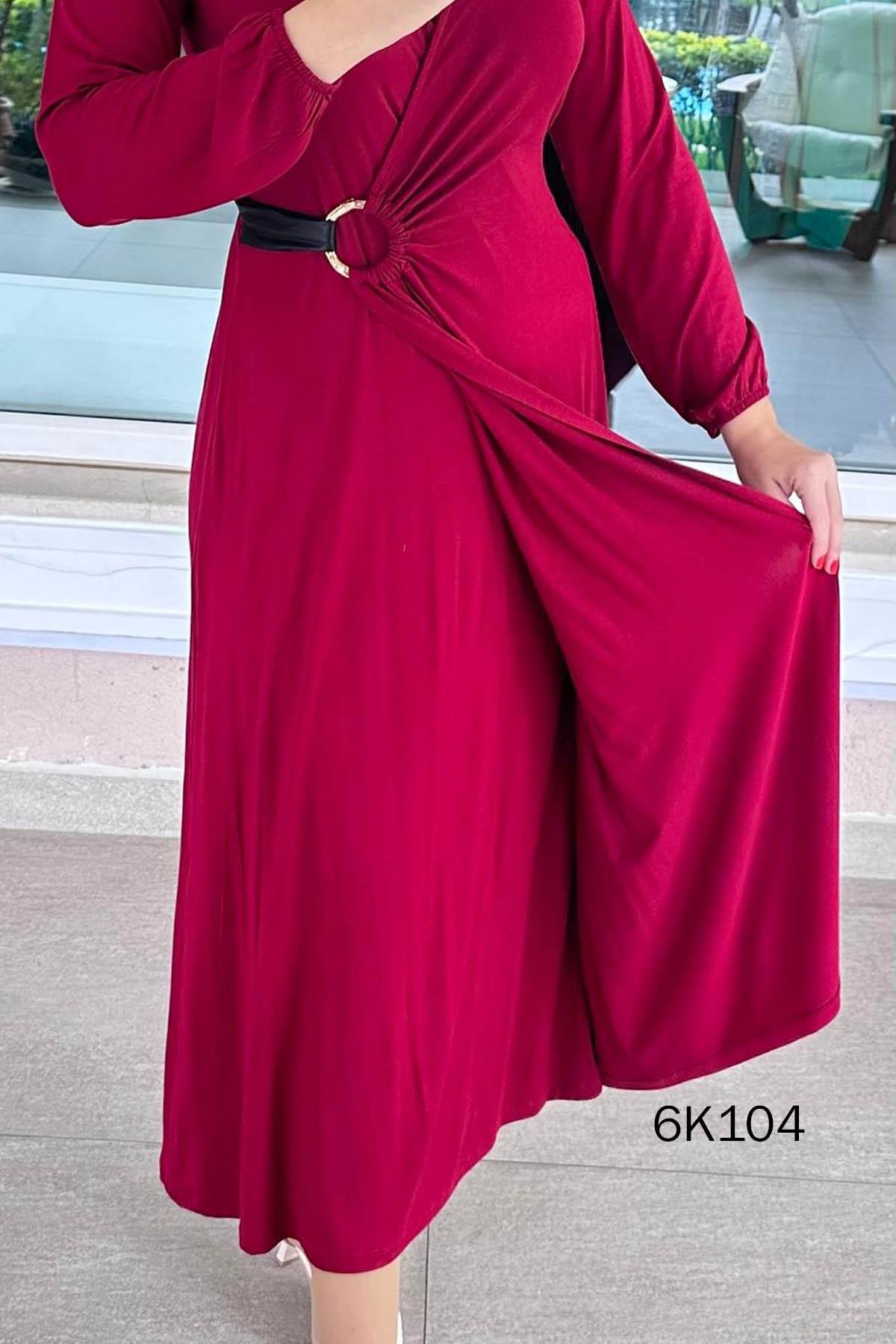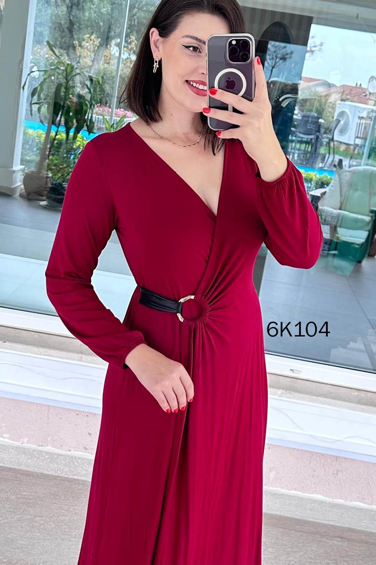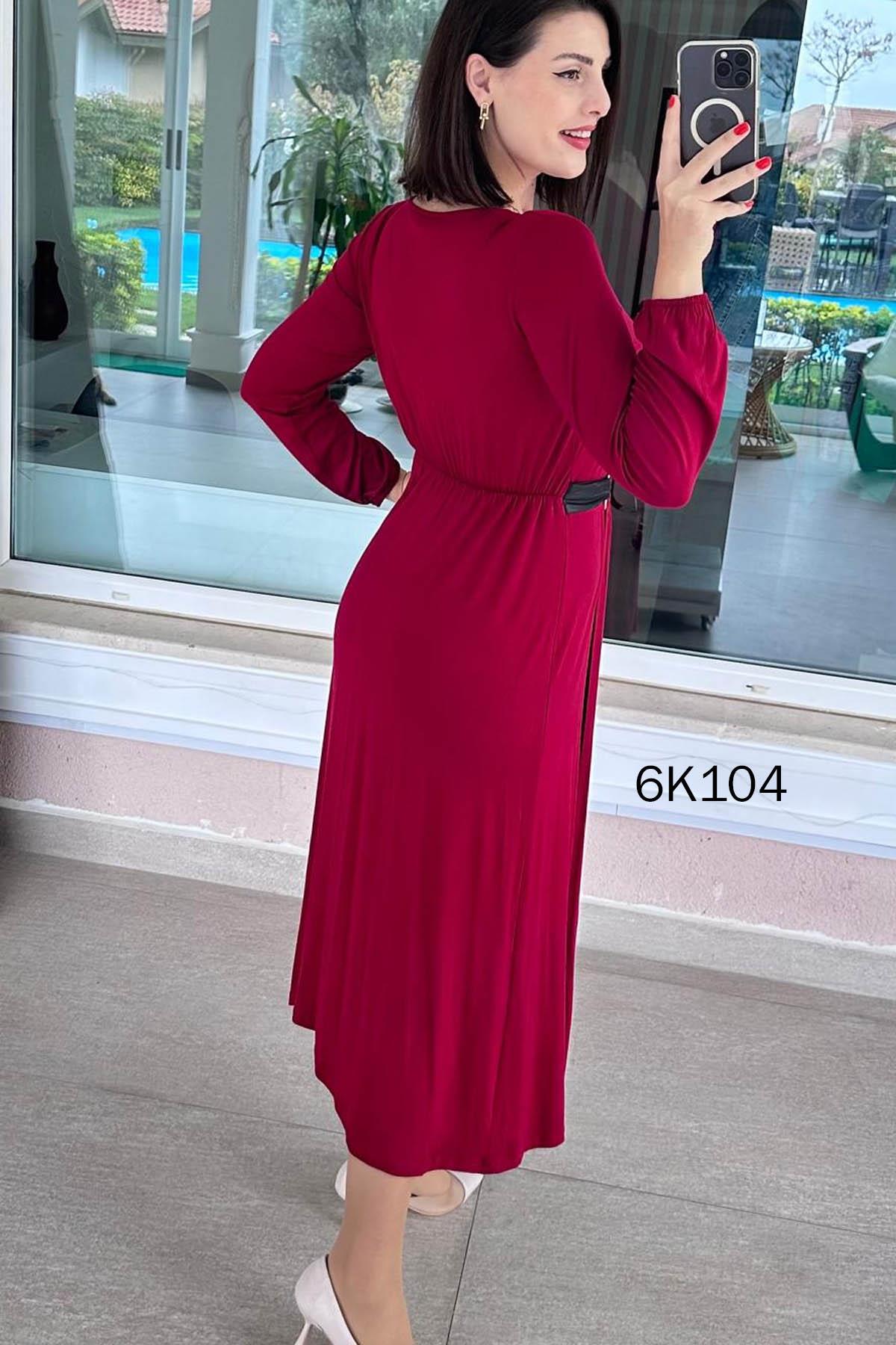 DERİ DETAYLI TOKALI KRİSTAL KUMAŞ ELBİSE OMUZDAN AŞAĞI 130 CM
