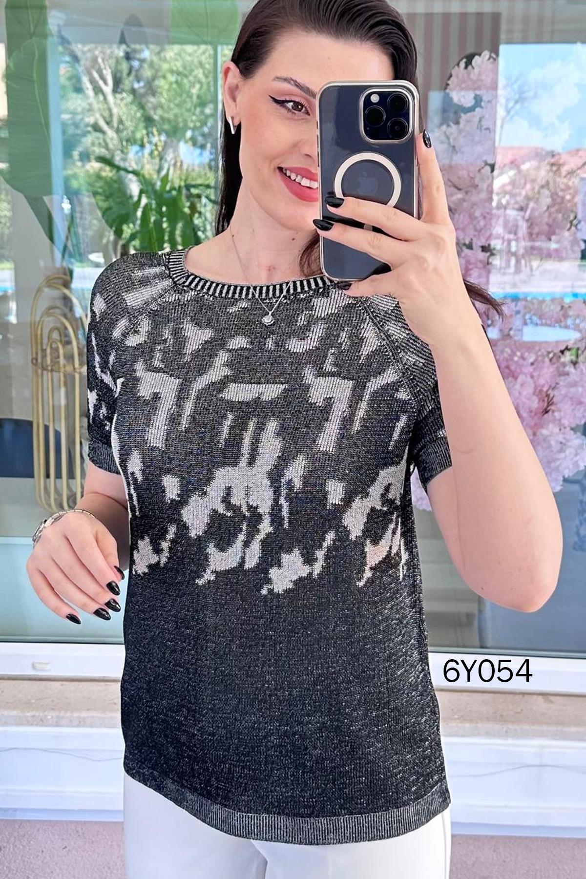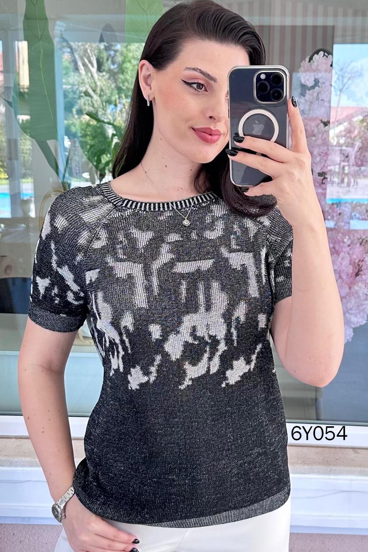 Desenli Merserize Triko Bluz (6Y0542859004)