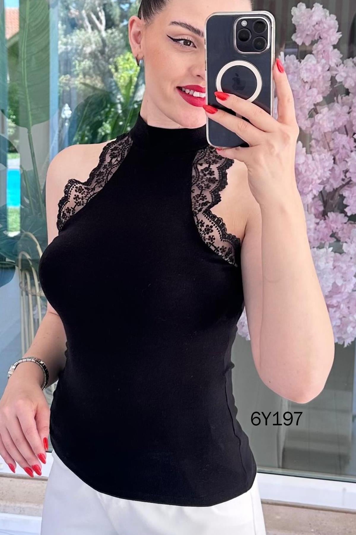 Dik Yaka Dantel Detay Bluz (6Y1931266004)