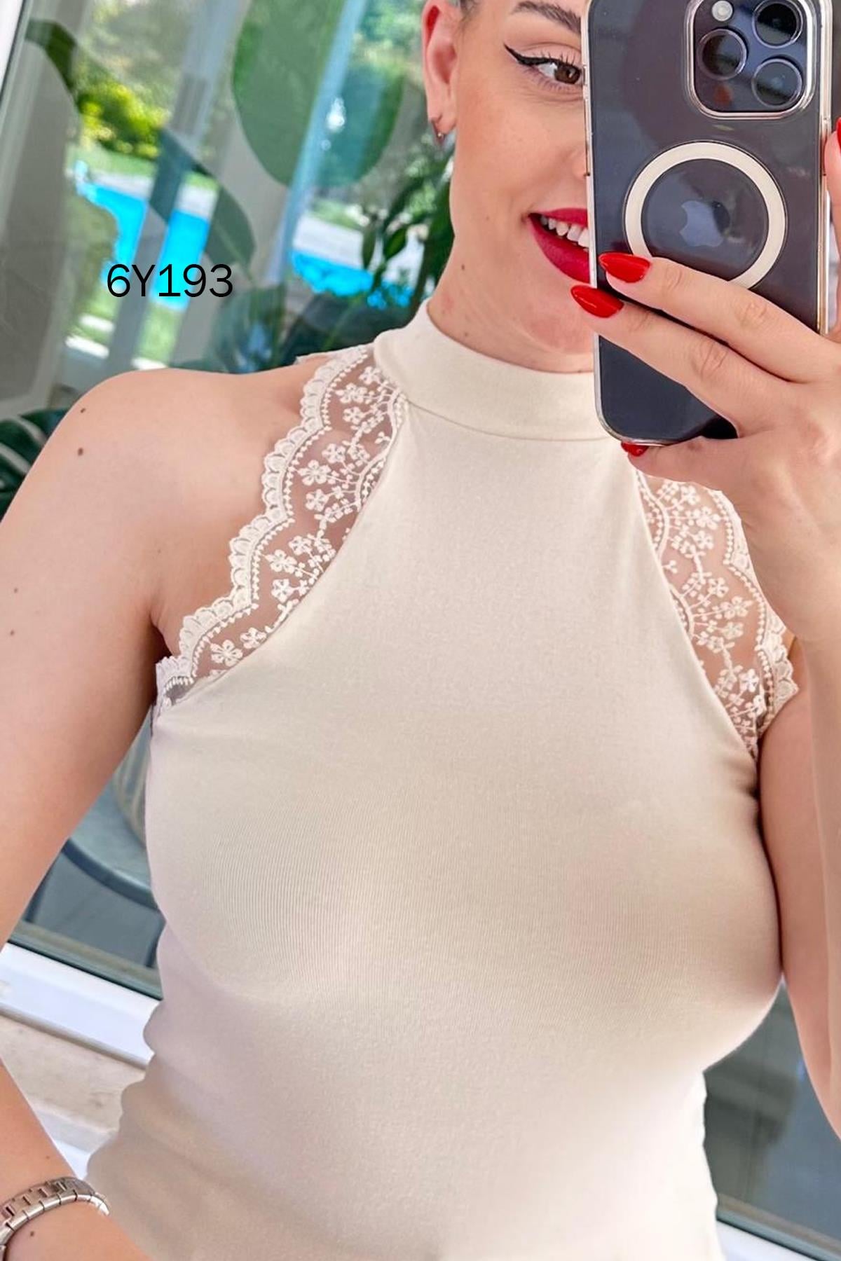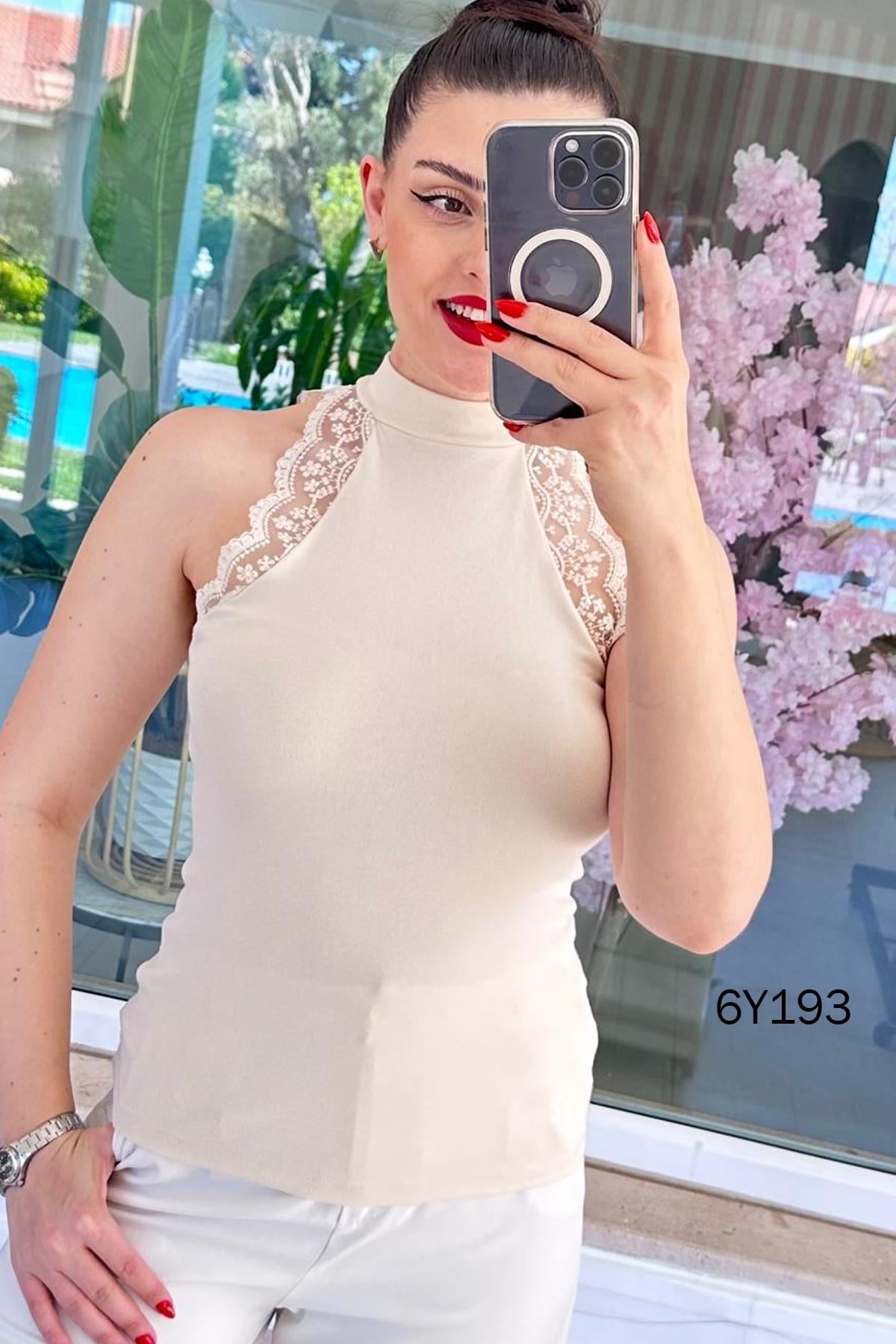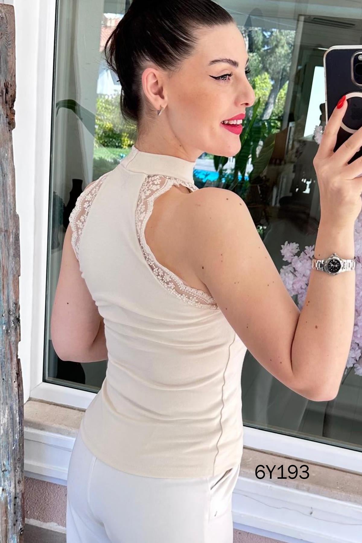 Dik Yaka Dantel Detay Bluz (6Y1931266036)