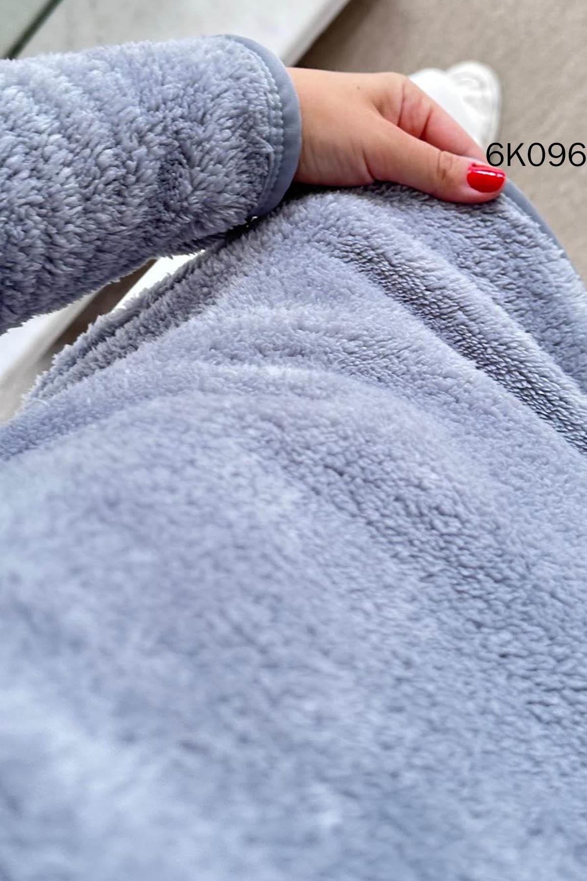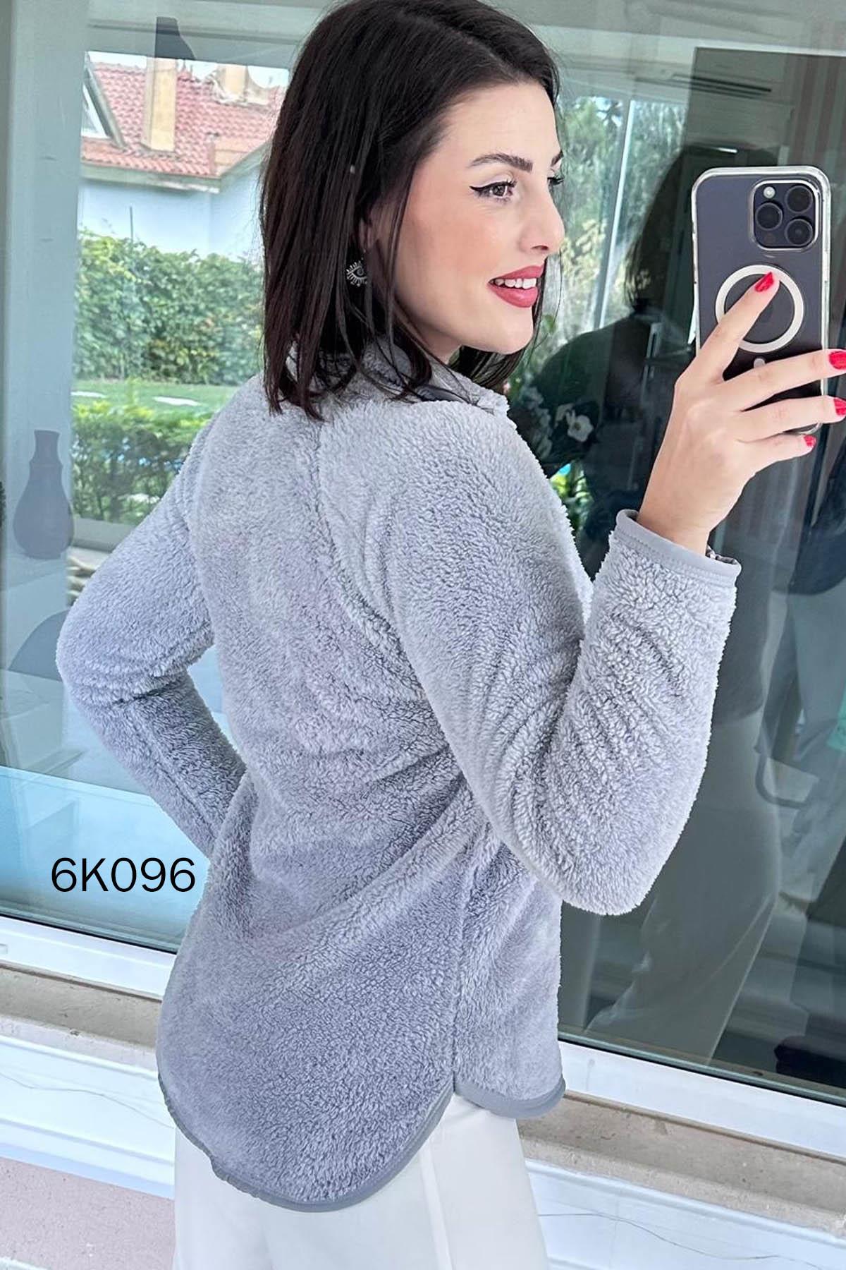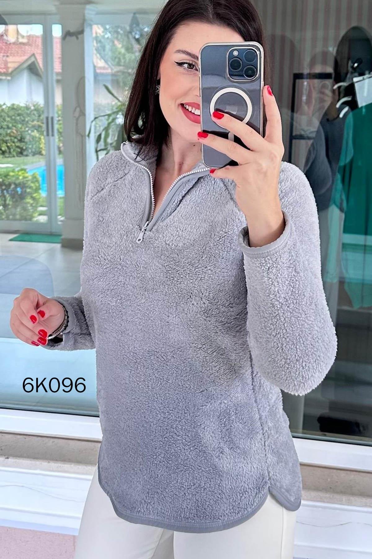 DİK YAKA YARIM FERMUARLI PELUŞ SWEAT OMUZDAN AŞAĞI ÖN 68 CM ARKA 73 CM