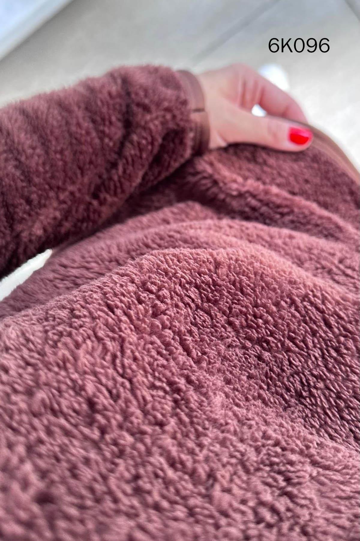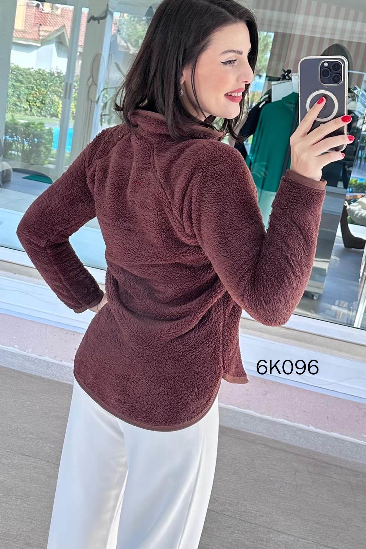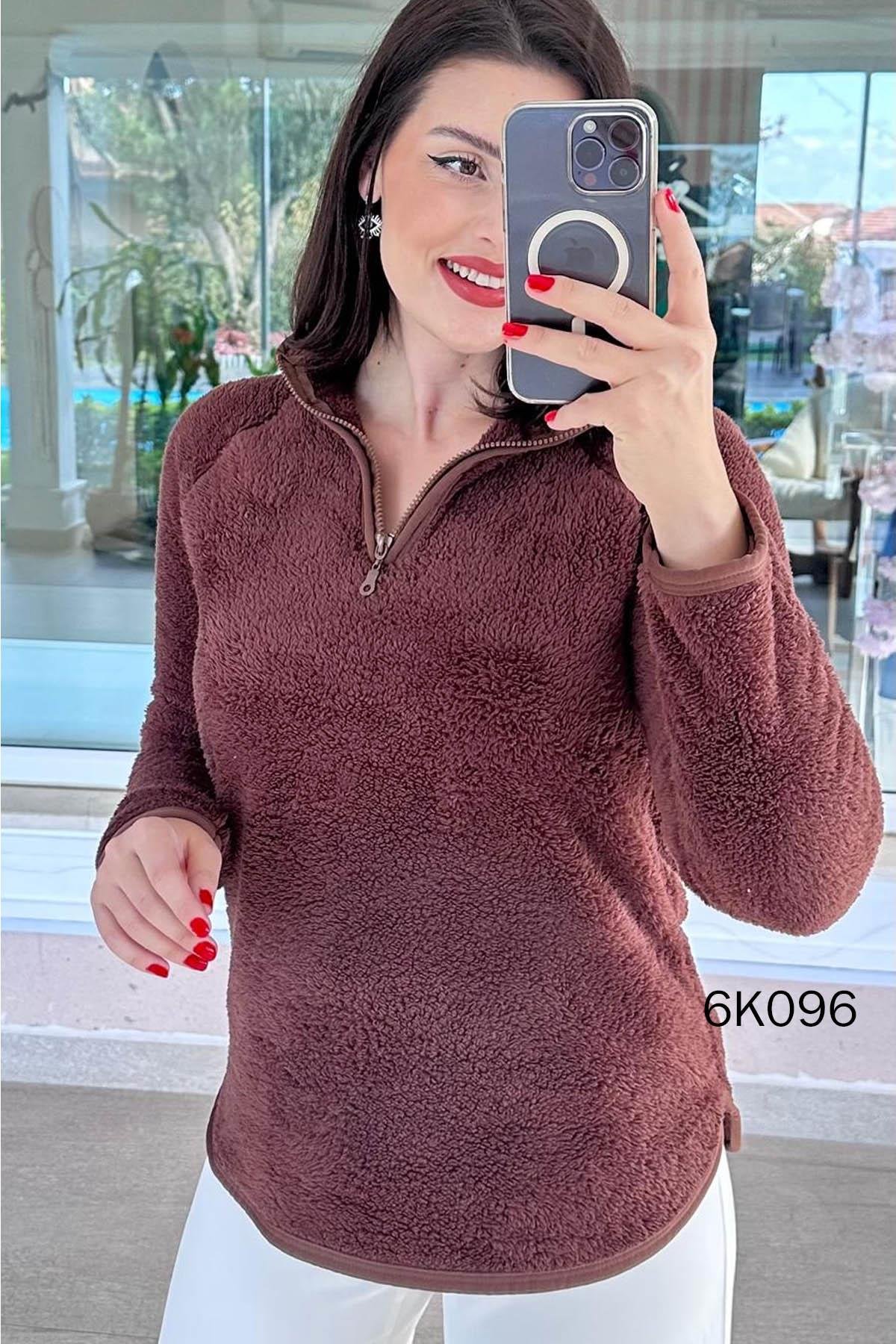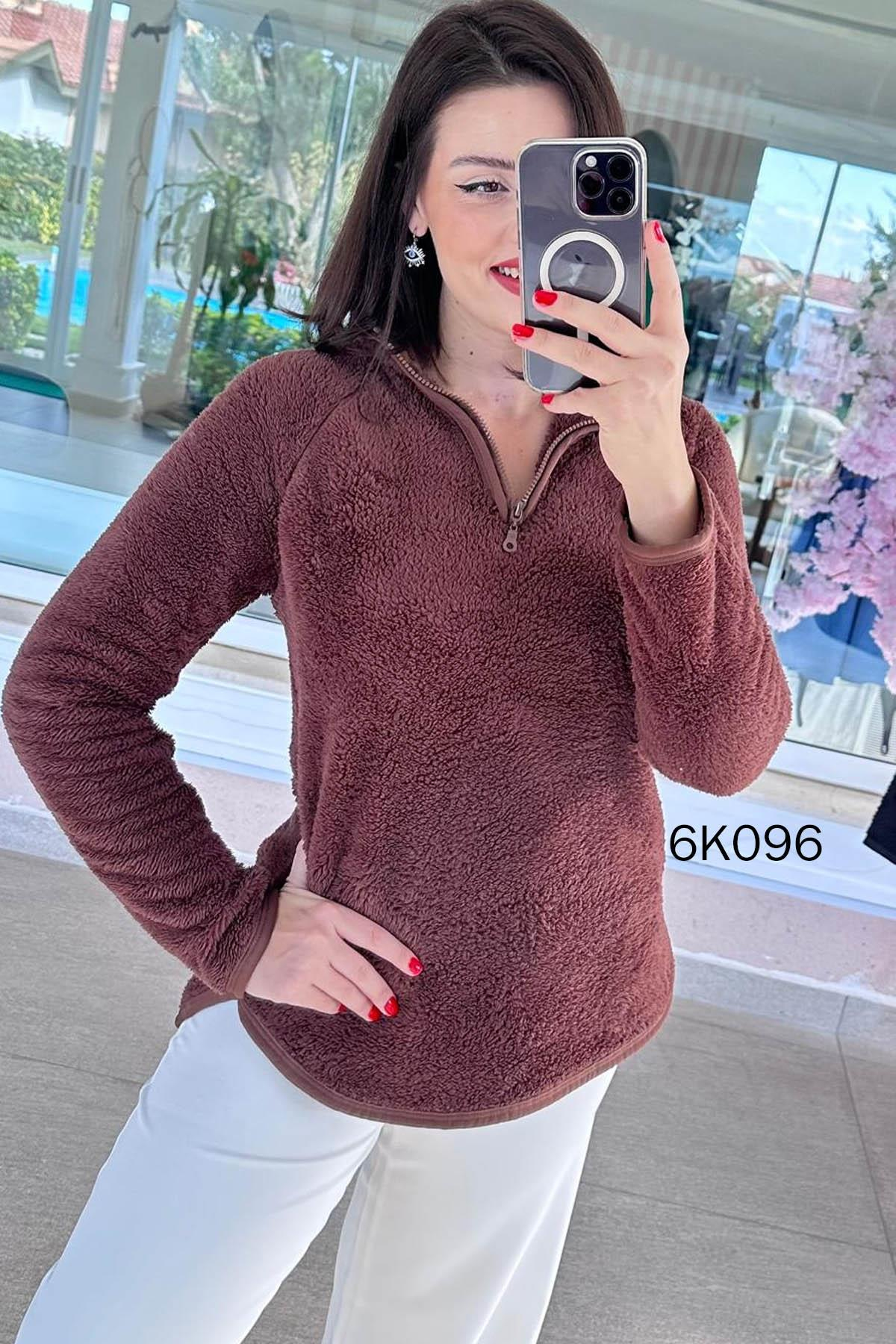 DİK YAKA YARIM FERMUARLI PELUŞ SWEAT OMUZDAN AŞAĞI ÖN 68 CM ARKA 73 CM