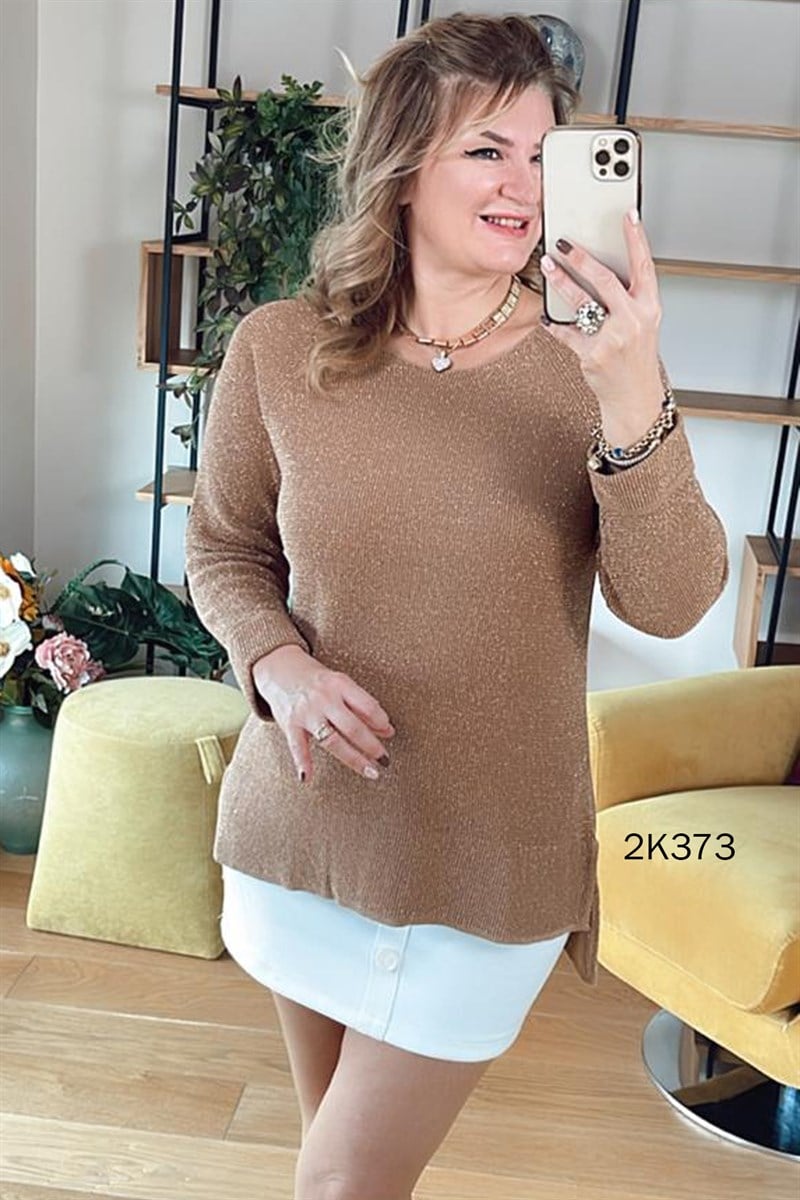 DUBLE KOL SİMLİ TRİKO BLUZ OMUZDAN AŞAĞI ÖN 67 CM ARKA 72 CM