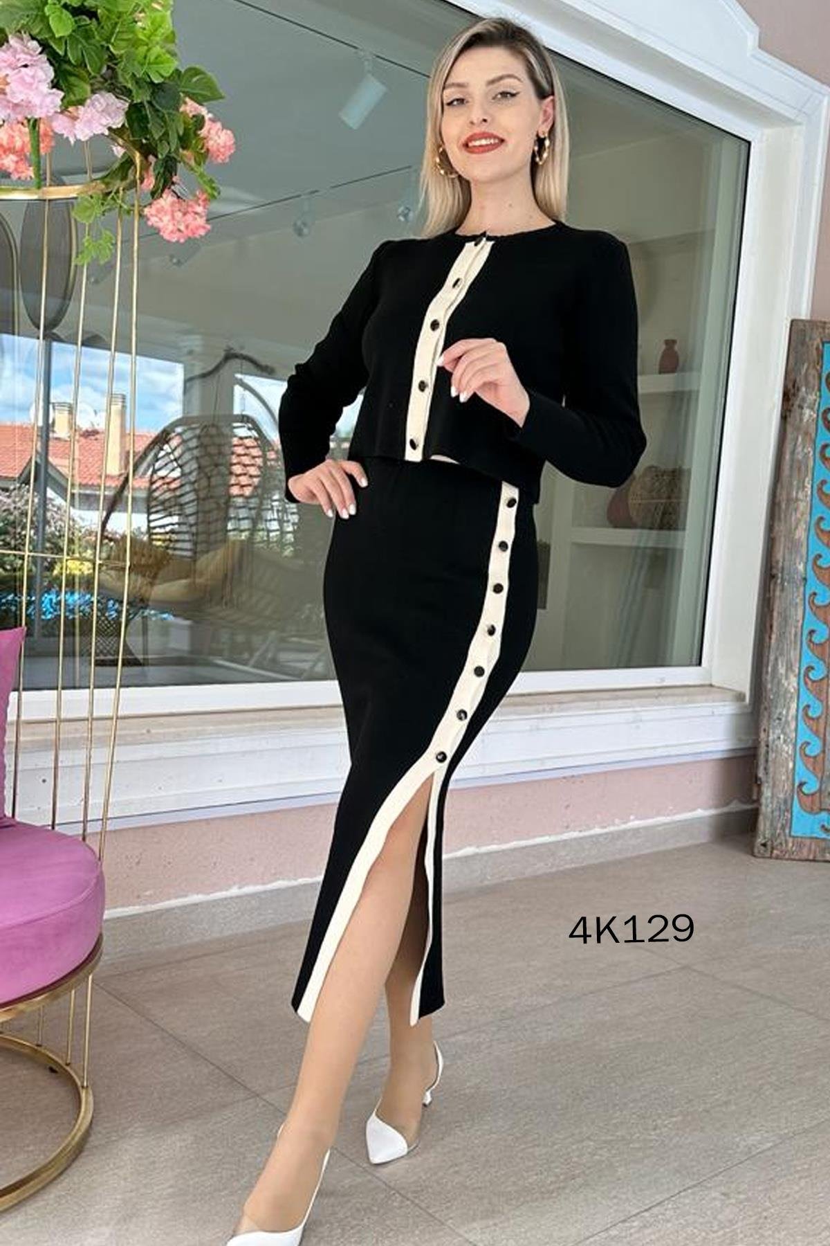 DÜĞME DETAY ETEKLİ TRİKO TAKIM ÜST OMUZDAN AŞAĞI 45 CM ALT BELDEN AŞAĞI 95 CM