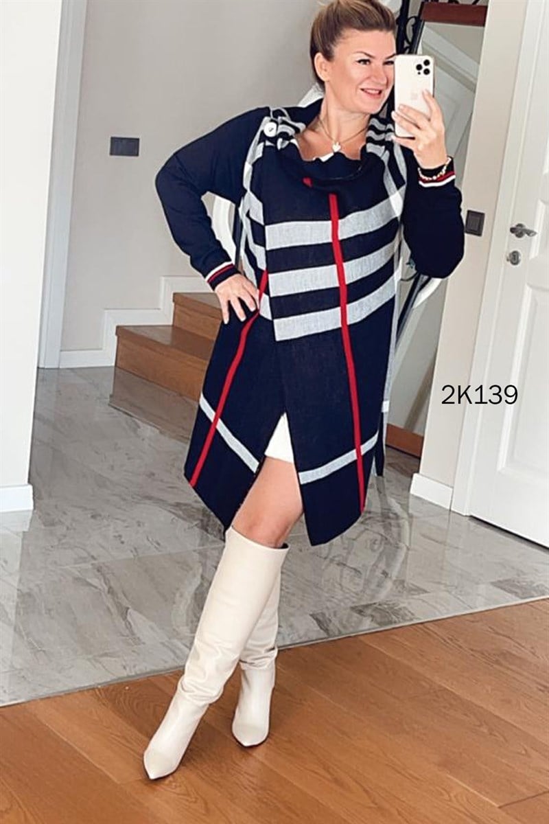 DÜĞMELİ TRİKO PANÇO HIRKA OMUZDAN AŞAĞI 85 CM