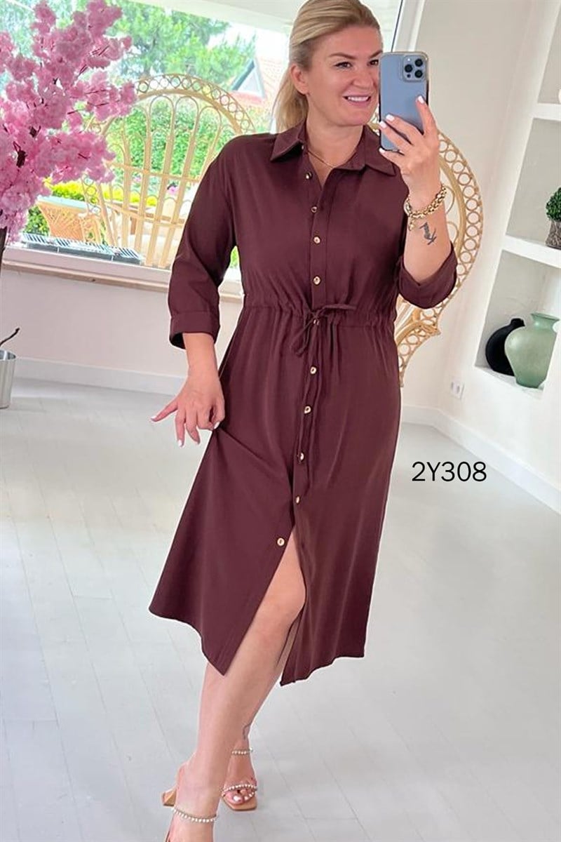 DÜĞMELİ MEDİNE İPEĞİ ELBİSE OMUZDAN AŞAĞI 114 CM