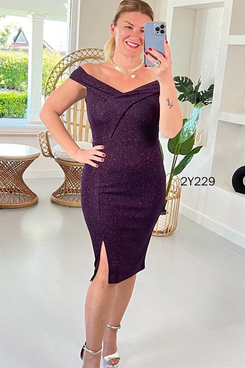 DÜŞÜK OMUZ DEKOLTE SİMLİ ELBİSE OMUZDAN AŞAĞI 95 CM