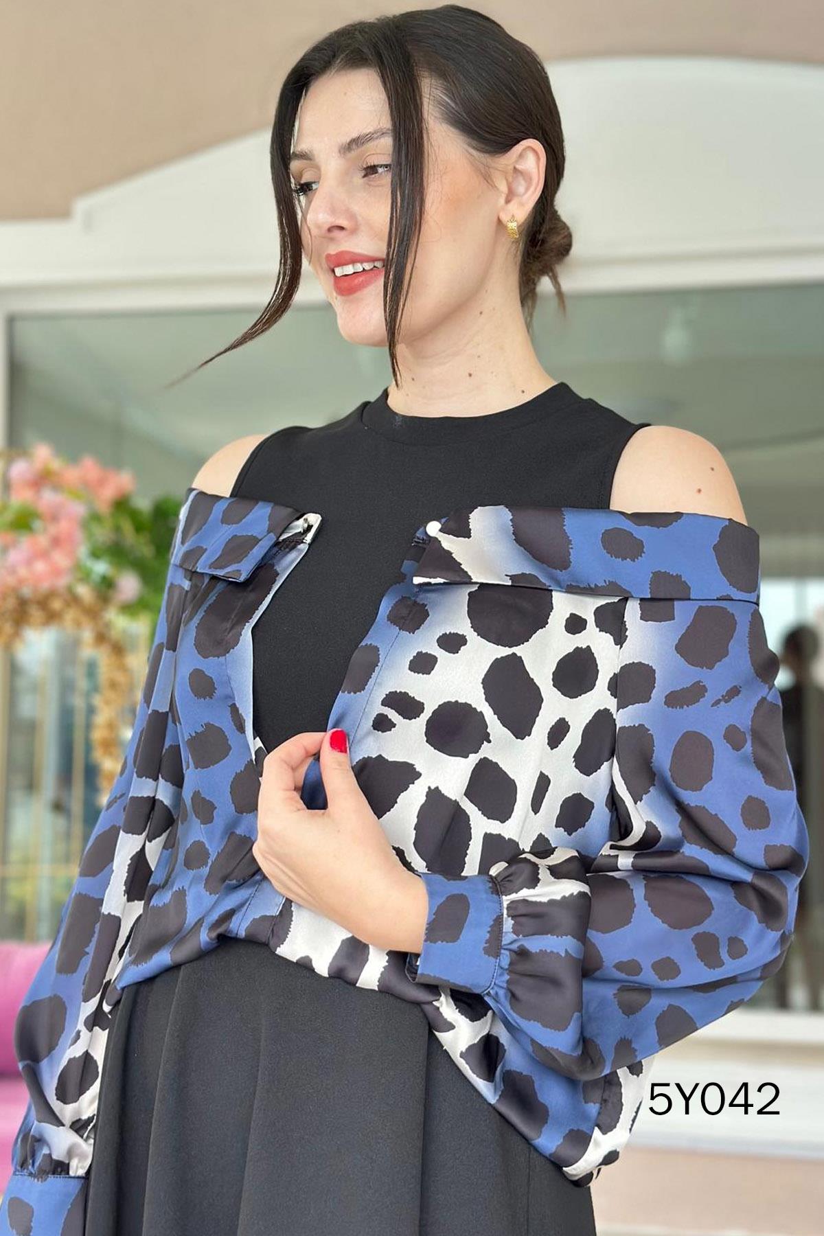 DÜŞÜK OMUZ SATEN GARNİLİ KREP ELBİSE OMUZDAN AŞAĞI 95CM