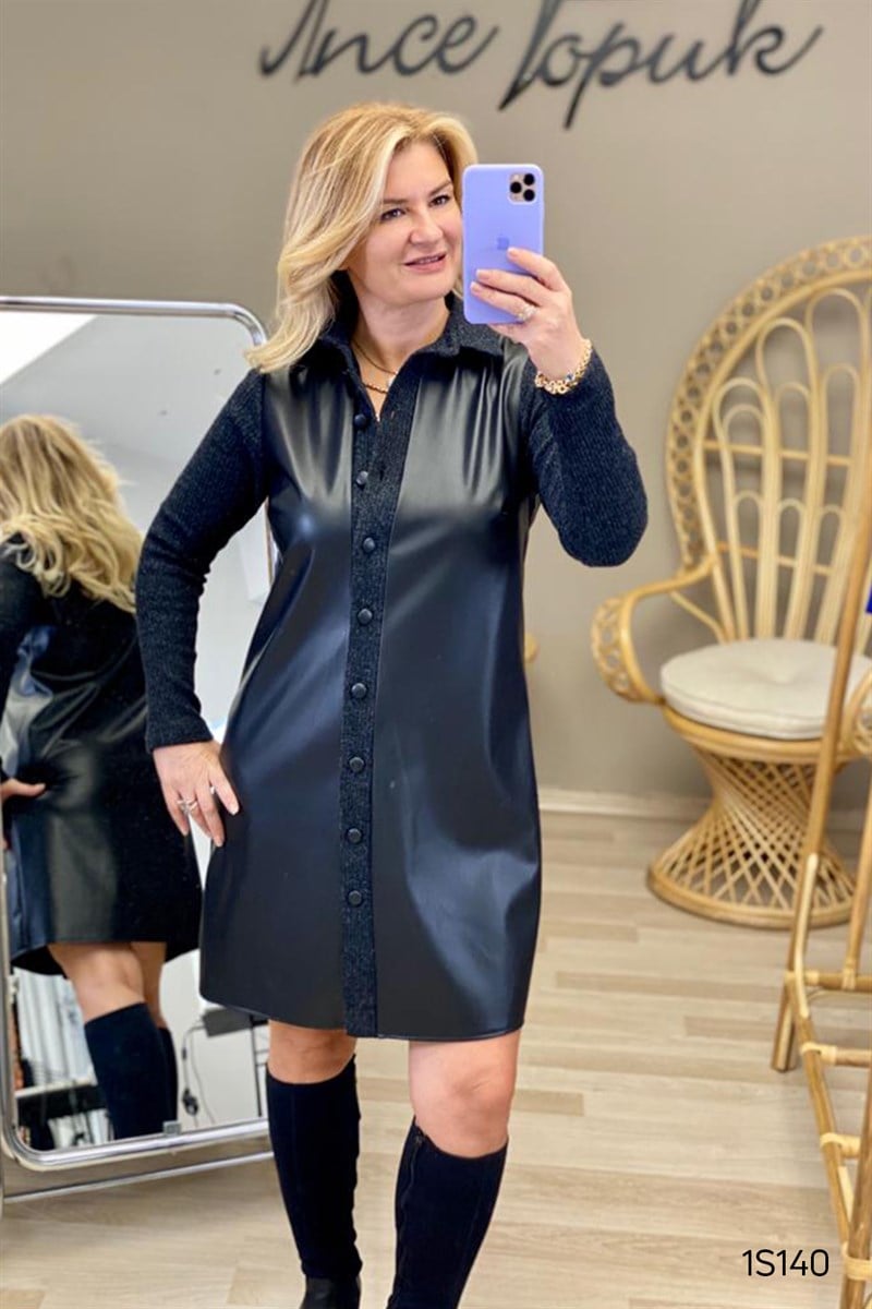Düğmeli Deri Elbise