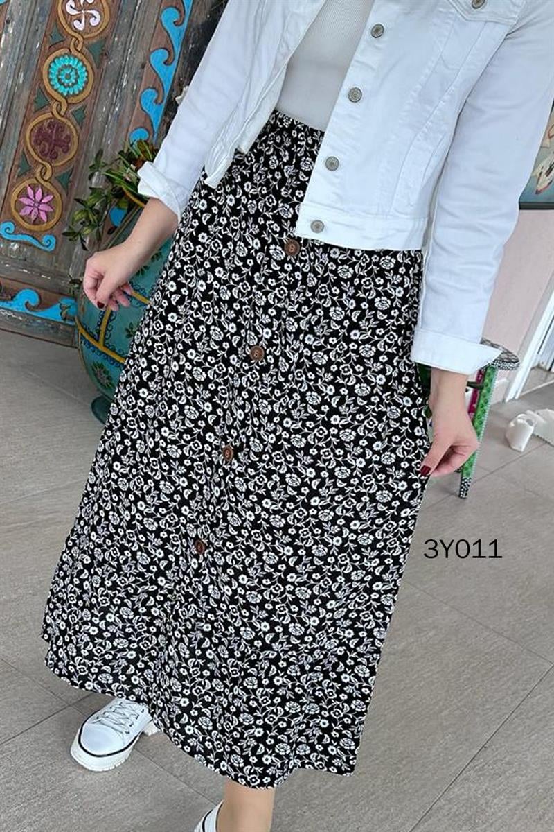 ETEĞİ FIRFIRLI ÖNDEN DÜĞME DETAY ETEK BELDEN AŞAĞI 93 CM