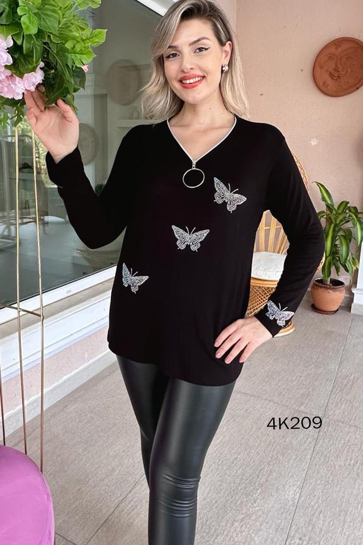 FERMUAR DETAY KELEBEK TAŞ BASKILI ÇİLEK BLUZ OMUZDAN AŞAĞI 70 CM