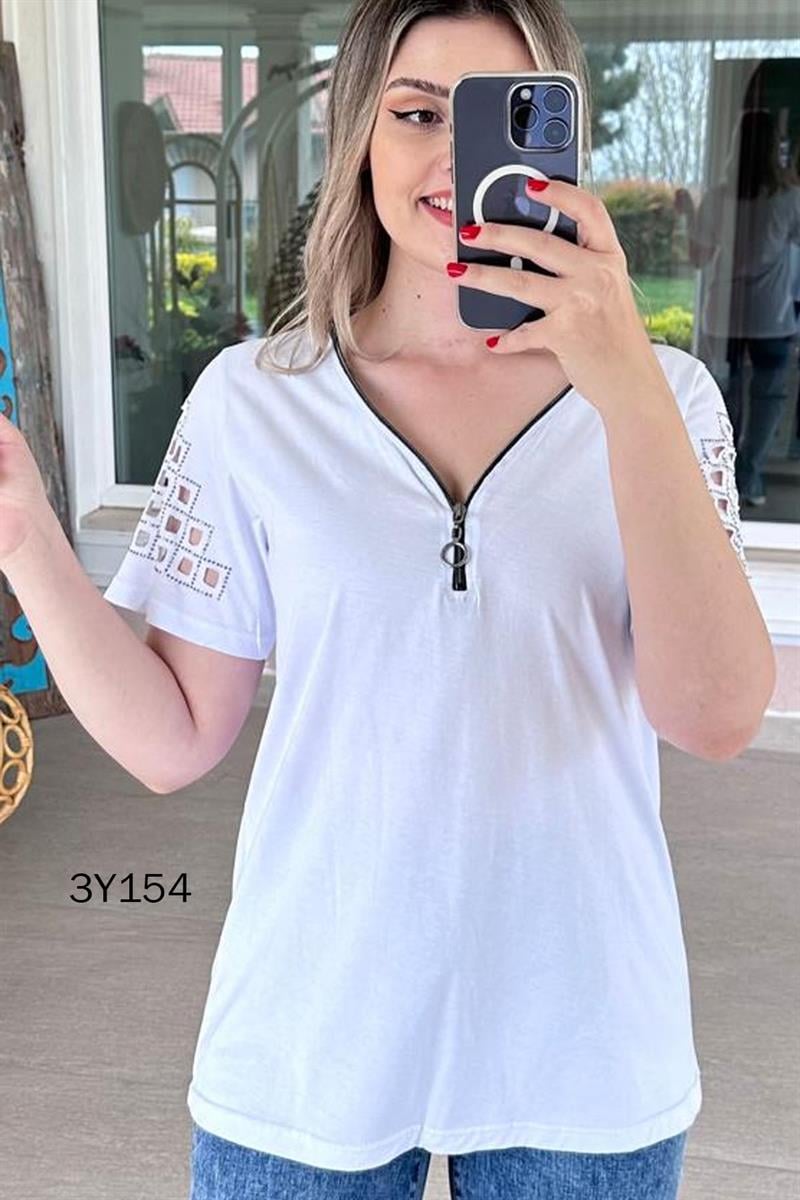 FERMUARLI TAŞ DETAY BLUZ OMUZDAN AŞAĞI 73 CM