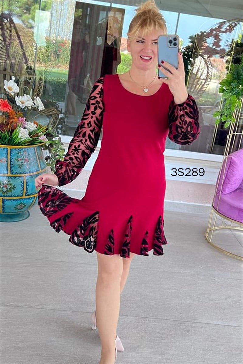 FLOK BASKILI FIRFIR DETAY ELBİSE OMUZDAN AŞAĞI 92 CM
